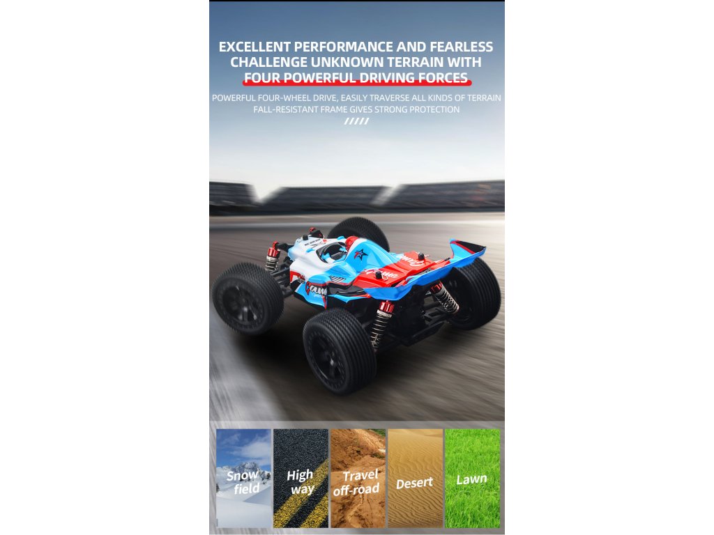 Erleben Sie eine adrenalingeladene Fahrt mit diesem Hochgeschwindigkeits-Fernlenkauto im Maßstab 1:16. Dieses Auto ist mit einem leistungsstarken 390er Motor und einer modernen 2,4-GHz-Fernbedienung ausgestattet, die eine präzise Steuerung und hervorragende Leistung auch in anspruchsvollem Gelände gewährleistet.