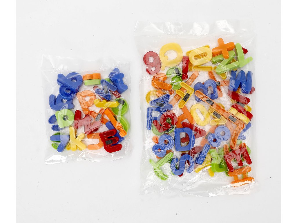 Bunte magnetische Buchstaben- und Zahlen-Set für den Kühlschrank oder eine Magnettafel. Ein großartiges didaktisches Hilfsmittel für Vorschulkinder – das Kind übt das Alphabet, Zahlen, bildet Wörter, einfache Beispiele und trainiert die Feinmotorik. Ideal als erster Kontakt mit Lesen und Rechnen in Form eines unterhaltsamen Spiels.