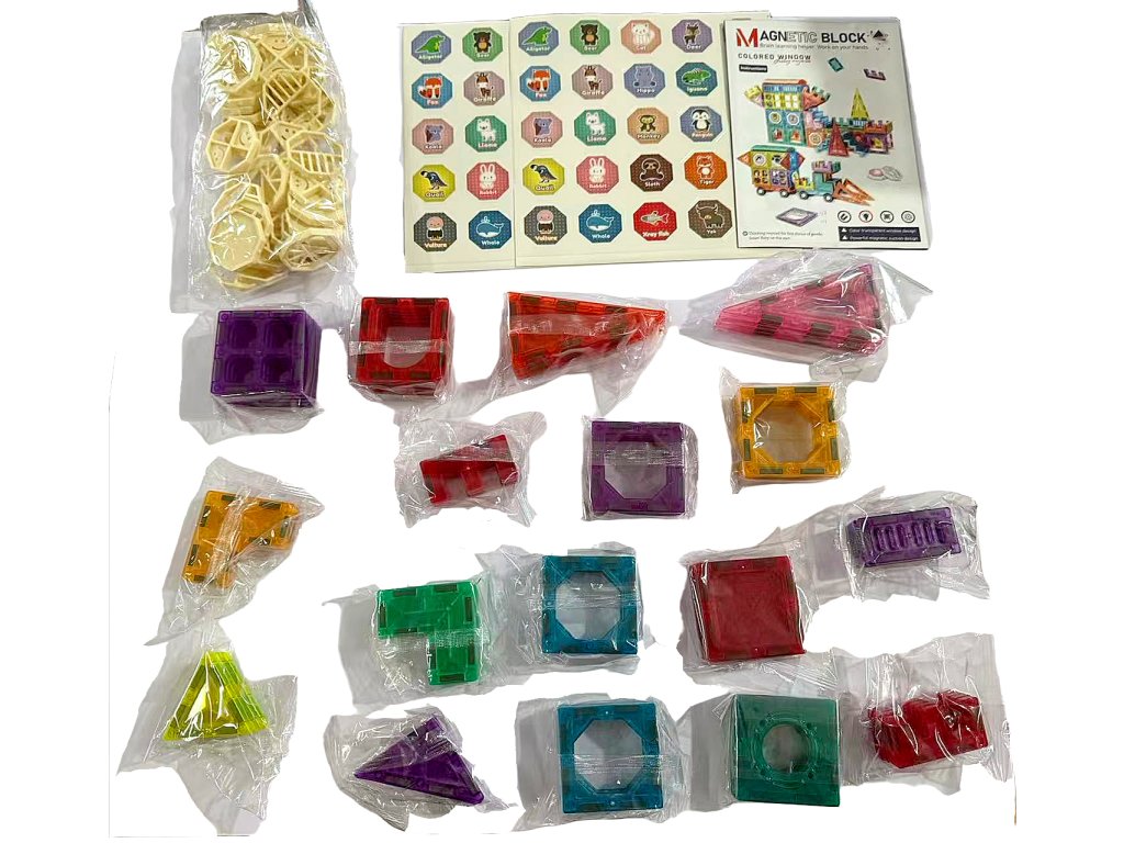 Das Set enthält 58 magnetische Teile in verschiedenen Formen – Dreiecke, Quadrate, Bögen, lange Paneele, dekorative Fenster und Spezialteile. Transparente Ausführung in leuchtenden Farben fördert die visuelle Wahrnehmung und dank einfacher Verbindung können auch kleinere Kinder damit umgehen. Ideal für die Entwicklung von Kreativität, logischem Denken und räumlicher Vorstellungskraft.