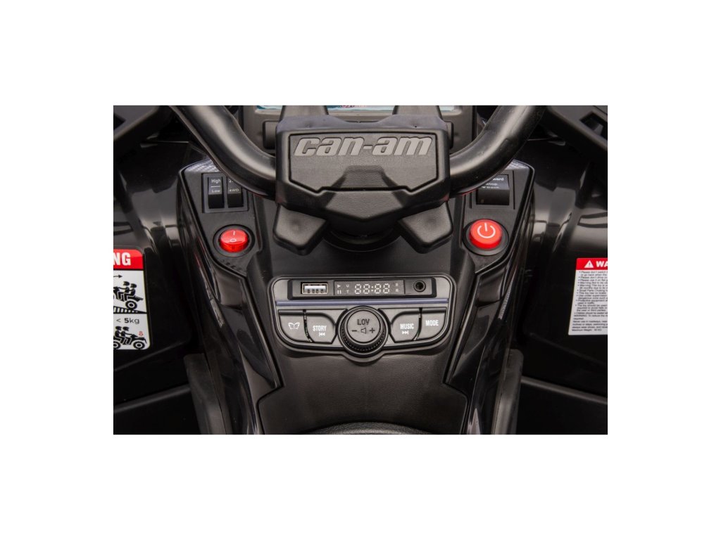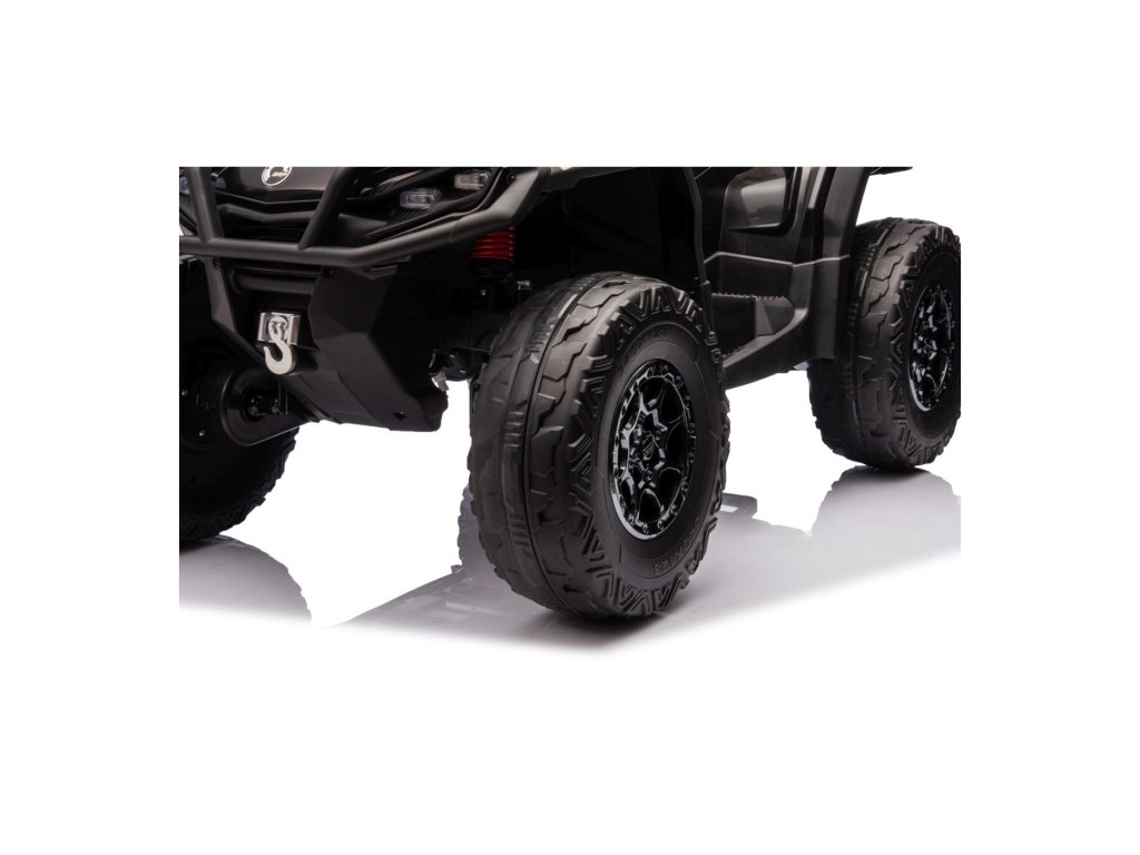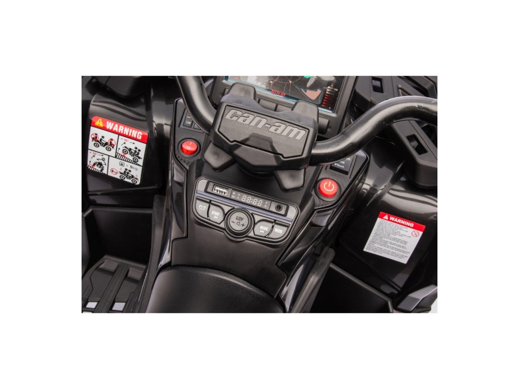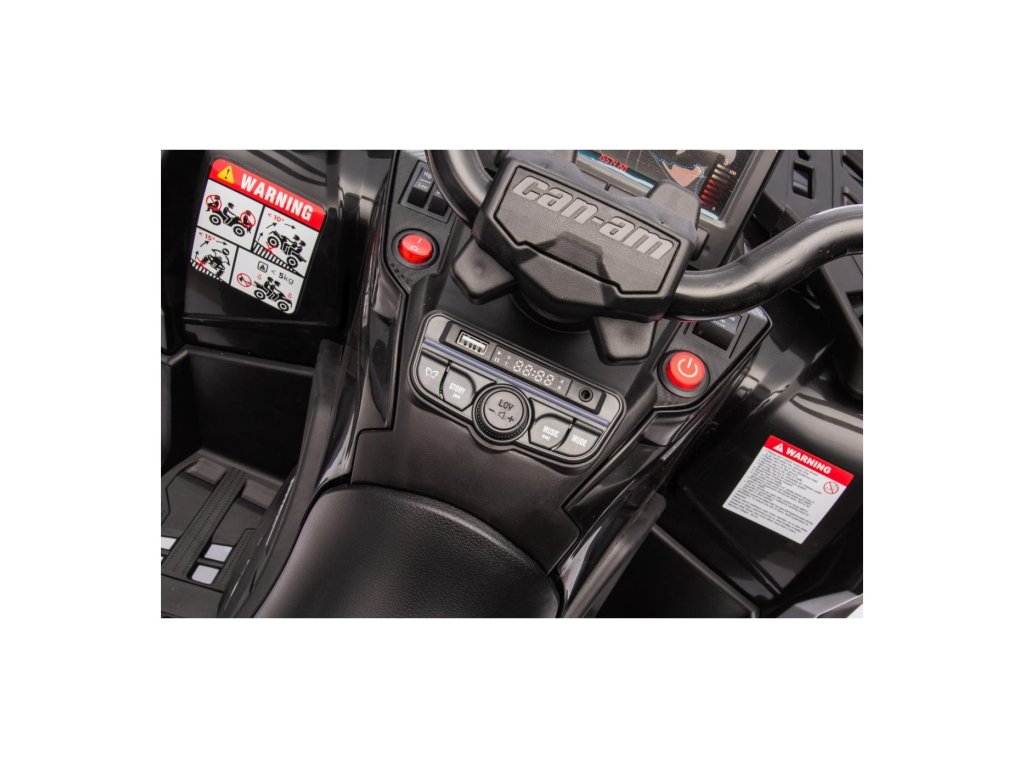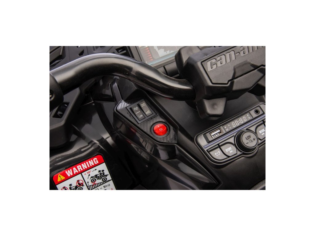 Zur Ausstattung gehört ein Musikpanel mit Eingängen USB, MP3, Radio, AUX, Bluetooth und vorinstallierten Melodien. Das ATV Quad verfügt über Vorder- und Rücklichter, ermöglicht Fahrten in alle Richtungen und hat eine Tragfähigkeit von bis zu 50 kg.