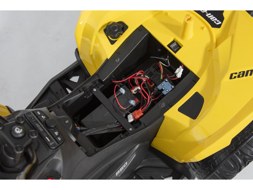 Zur Ausstattung gehört ein Musikpanel mit Eingängen USB, MP3, Radio und Bluetooth. Das Can-Am Quad hat vorne und hinten Lichter, ermöglicht die Fahrt in alle Richtungen und seine Tragfähigkeit beträgt bis zu 30 kg.