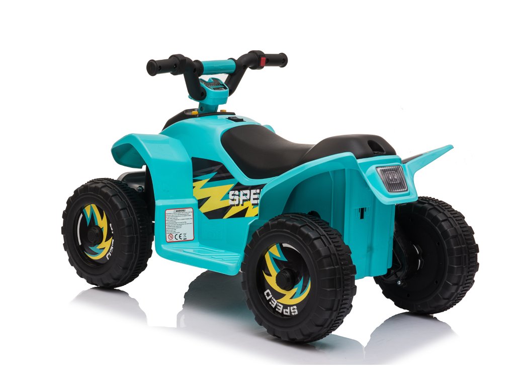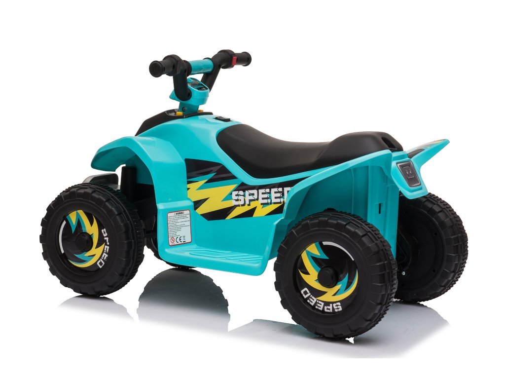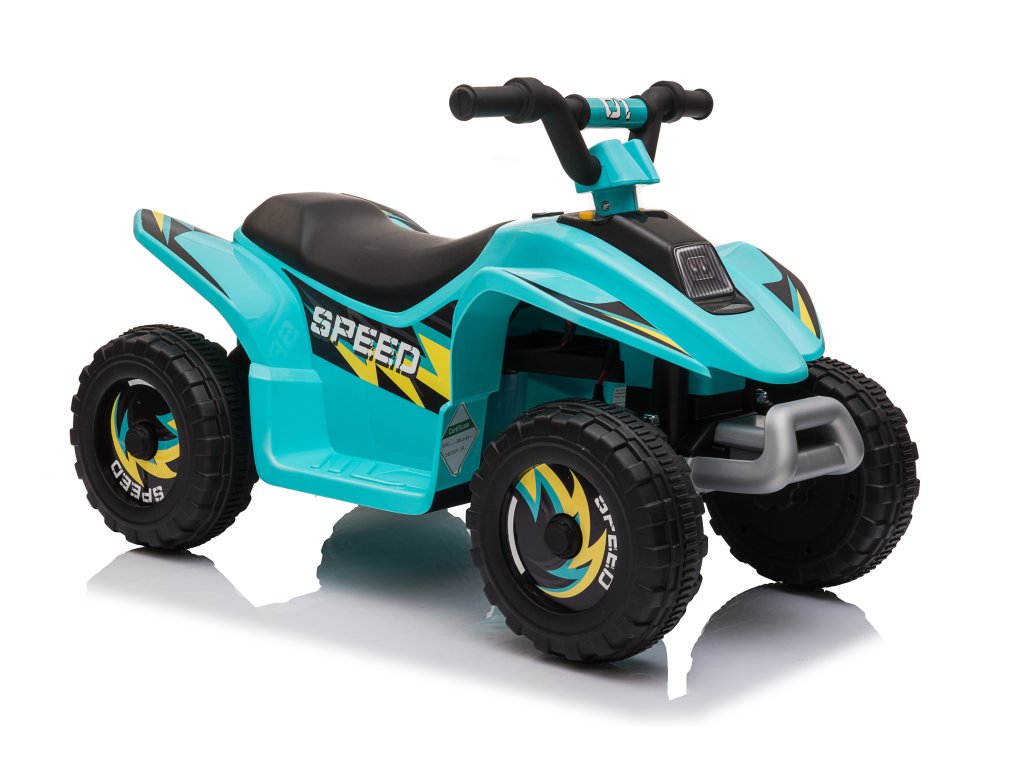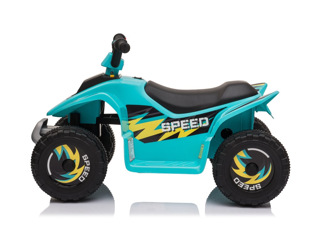 Kinder-Elektro-Quad Speed Junior für die Kleinsten ist größenmäßig für Kinder ab ca. 1,5 Jahren geeignet. Die Fahrt mit dem Quad ist sehr einfach, sie wird über einen Knopf am Lenker gesteuert. Das Anfahren und Anhalten ist fließend.