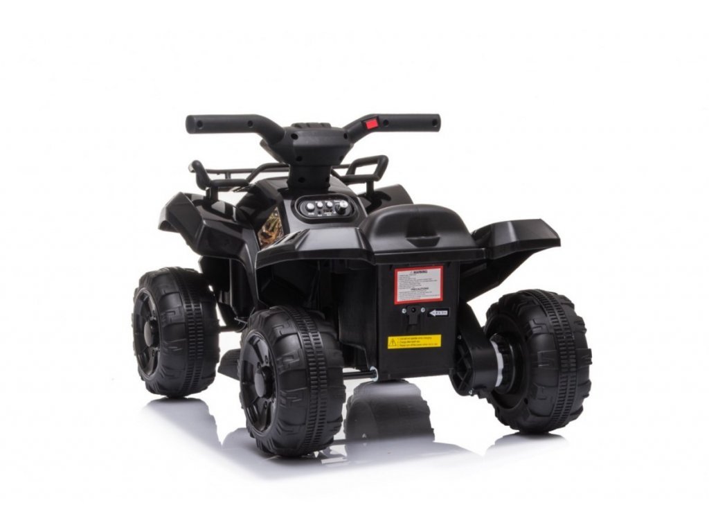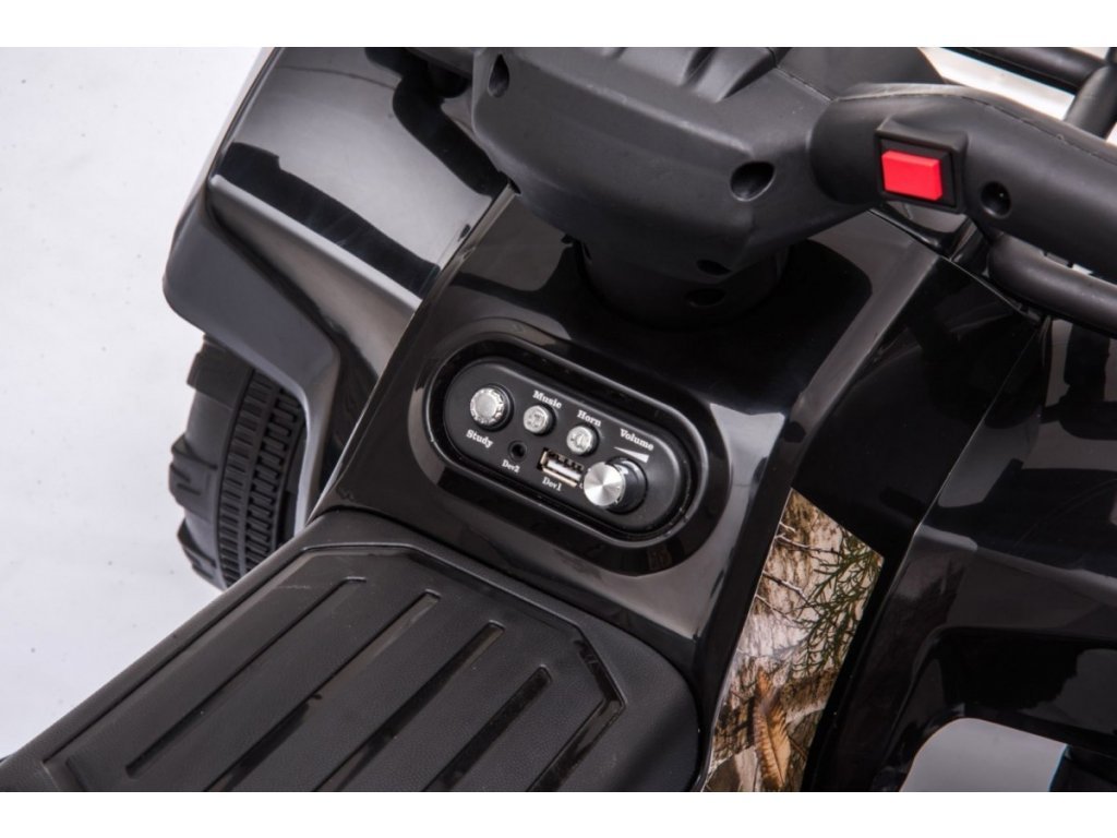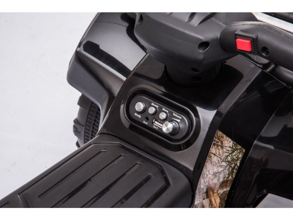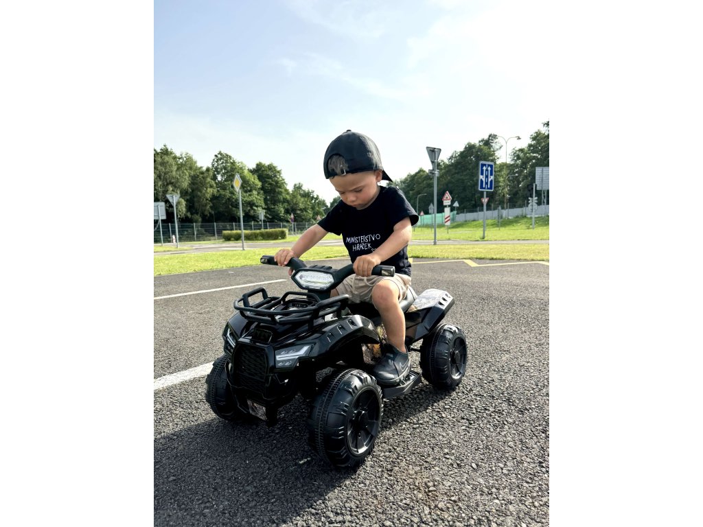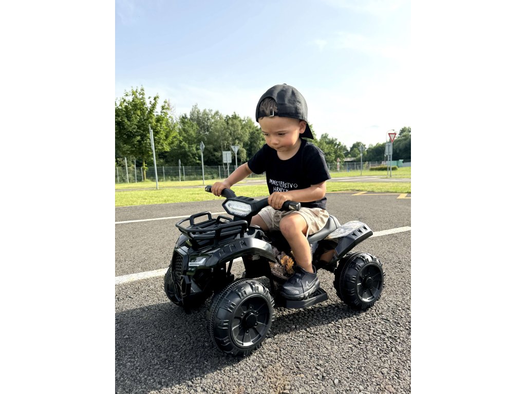 Kinder-Quad Storm ist größenmäßig für Kinder von 1,5 bis 3 Jahren geeignet, seine maximale Tragfähigkeit beträgt 20 kg. Es hat einen bequem geformten Sitz, breite Räder und Sound- und Lichteffekte. Das Musikpanel ist mit einem AUX-, USB-Eingang und vorab aufgenommenen Melodien ausgestattet. Das Kind kann sich mit den vorderen LED-Leuchten den Weg beleuchten.