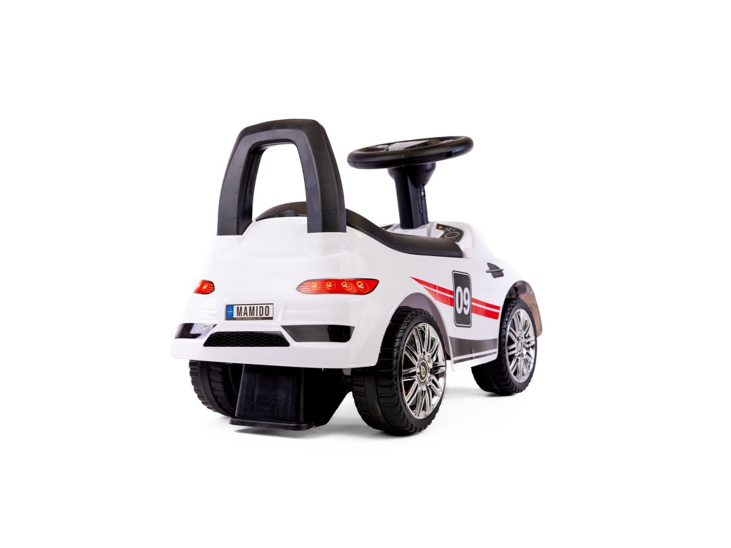 Das weiße Laufrad ist sehr leicht gebaut, was das Fahren erleichtert. Der große Sitz bietet Stauraum für kleine Gegenstände des Kindes, wie z. B. Spielzeug, das es mit auf den Spaziergang nehmen möchte. Die bequeme Rückenlehne, die am Sitz befestigt ist, sorgt dafür, dass das Kleinkind beim Spielen eine gerade Körperhaltung beibehält und sich auch wohlfühlt. Große, breite Räder ermöglichen es Ihnen, verschiedene Oberflächen zu wählen, wodurch das Auto sowohl zu Hause als auch im Garten fahren kann. Die Tragfähigkeit beträgt 30 kg und wird Ihrem Kind daher sicherlich lange dienen.