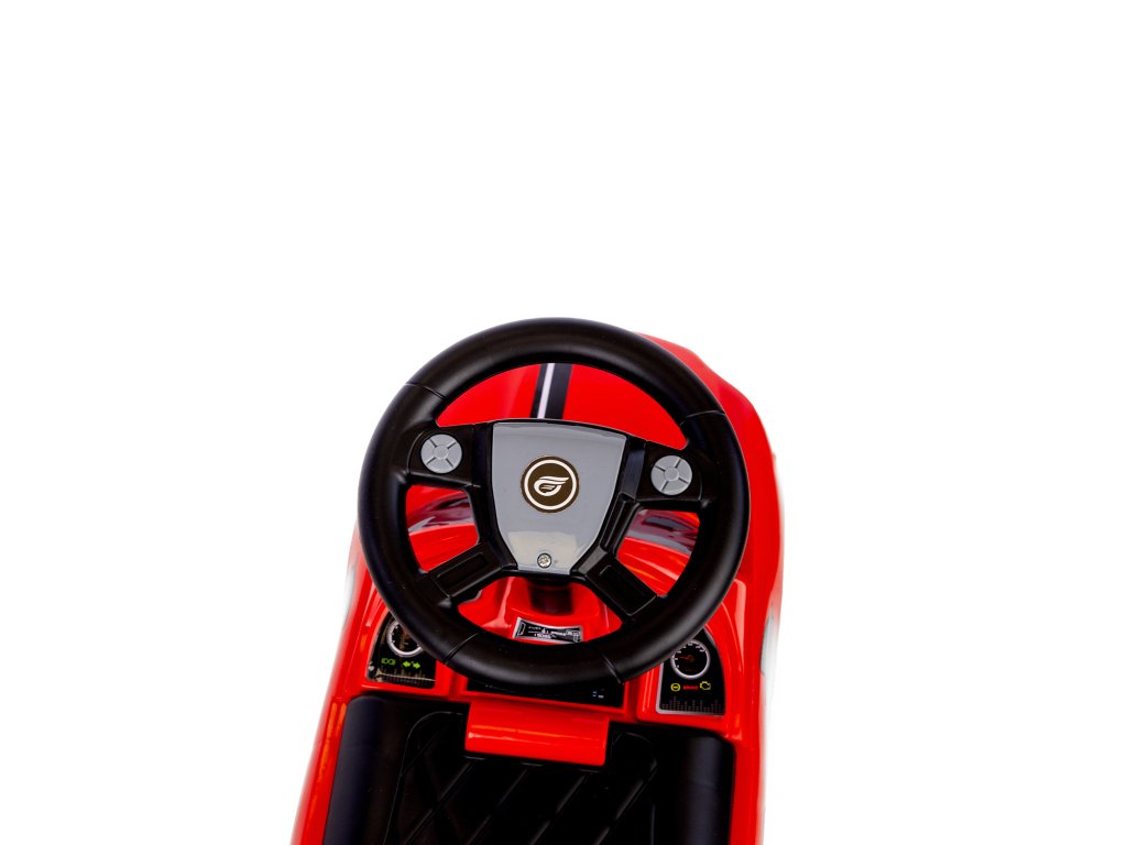 Ein großer Vorteil dieses Laufrads für Kinder ist das Multimedia-Lenkrad und die direkt darunter angeordneten Geschwindigkeitsanzeigen. Das interaktive Lenkrad ist mit Tasten ausgestattet, die angenehme Geräusche aktivieren. Fünf verschiedene Soundtypen lassen Ihr Kleinkind sich in seinem Auto wie ein echter Fahrer fühlen.