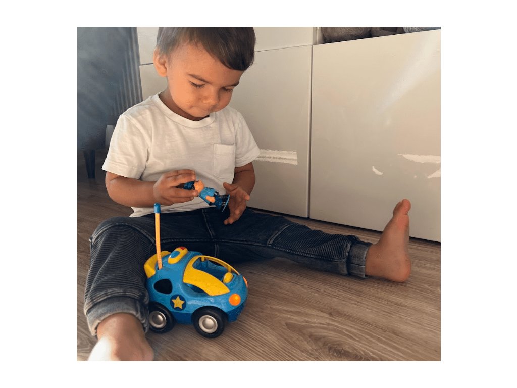 Einfache Fernbedienung im Lenkrad-Design für Kleinkinder, die schnell und einfach lernen, ein Auto zu fahren. Drei Knöpfe auf der Motorhaube des Autos lösen verschiedene Geräusche aus und alles wird von blinkenden Frontlichtern begleitet. Das Polizeiauto kann vorwärts, rückwärts fahren und lenken, während der Fahrt leuchten die Frontlichter. Die Fahrt ist dynamisch; dank der Gummiräder fährt das Auto leise und haftet hervorragend auf dem Boden.