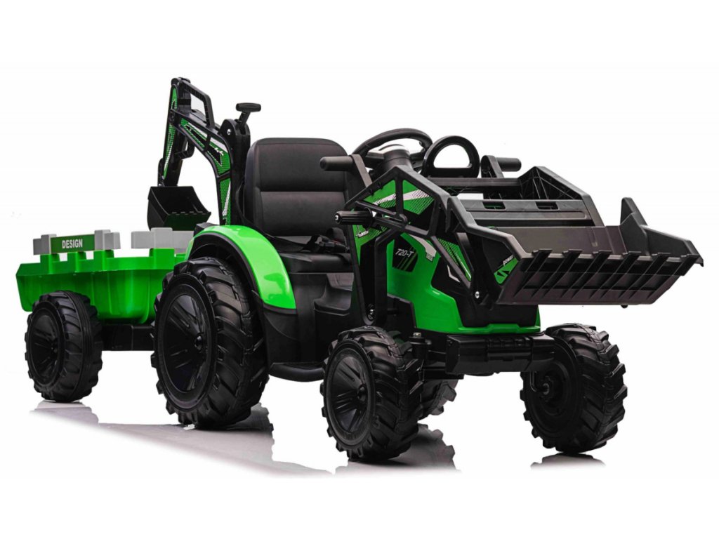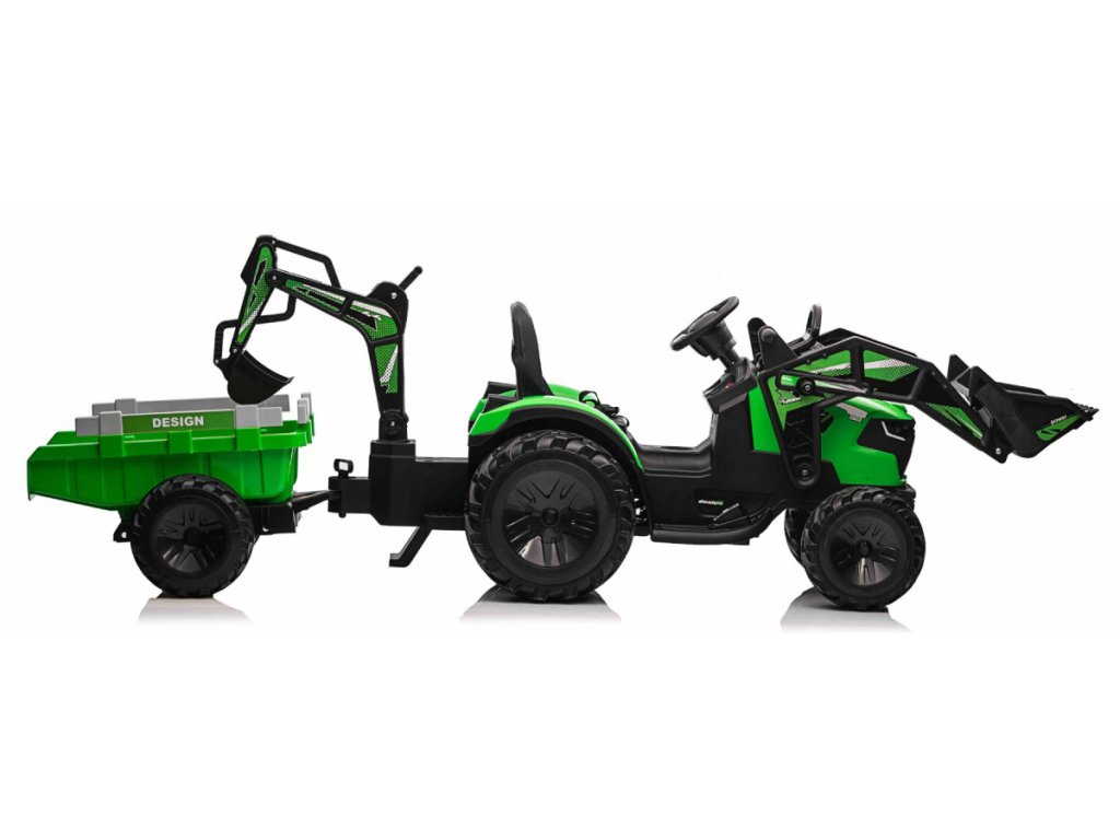 Kinder Elektro Traktor Bagger mit Anhänger Stark RC EVA Räder 12V10Ah grün