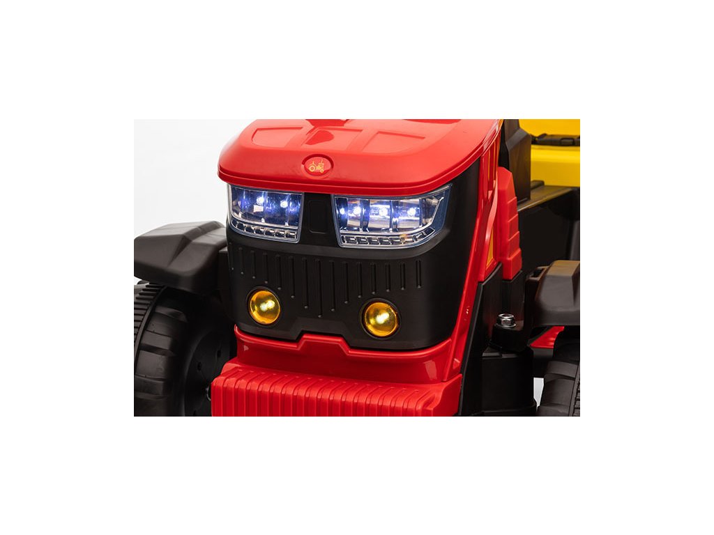 Ein bequemer Sitz mit Sicherheitsgurten sorgt für die Sicherheit des Kindes während der Fahrt. Das Musikpanel mit USB, AUX-Eingang und Speicherkartensteckplatz bietet Spaß und Interaktivität. Frontscheinwerfer tragen zu einem realistischeren Aussehen des Traktors bei.