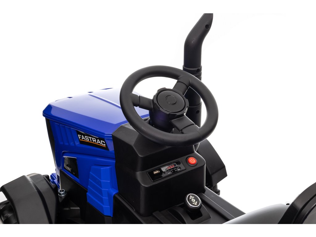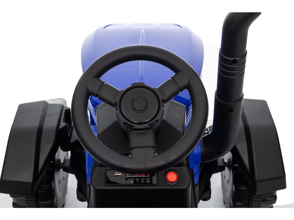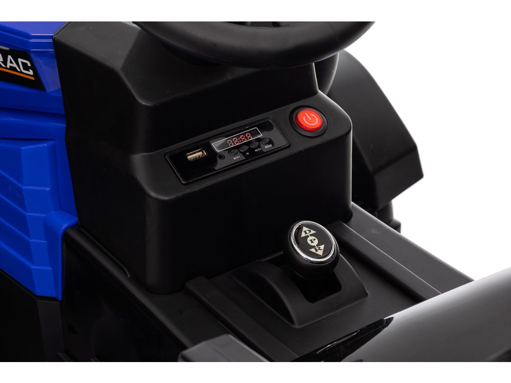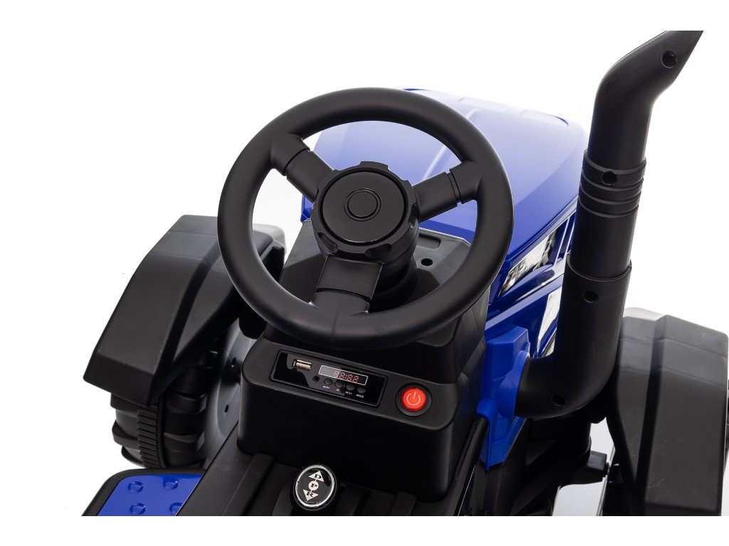 Ein bequemer Sitz mit Sicherheitsgurten sorgt für die Sicherheit des Kindes während der Fahrt. Das Musikpanel mit USB, AUX-Eingang und Speicherkartensteckplatz bietet Spaß und Interaktivität. Frontscheinwerfer tragen zu einem realistischeren Aussehen des Traktors bei.