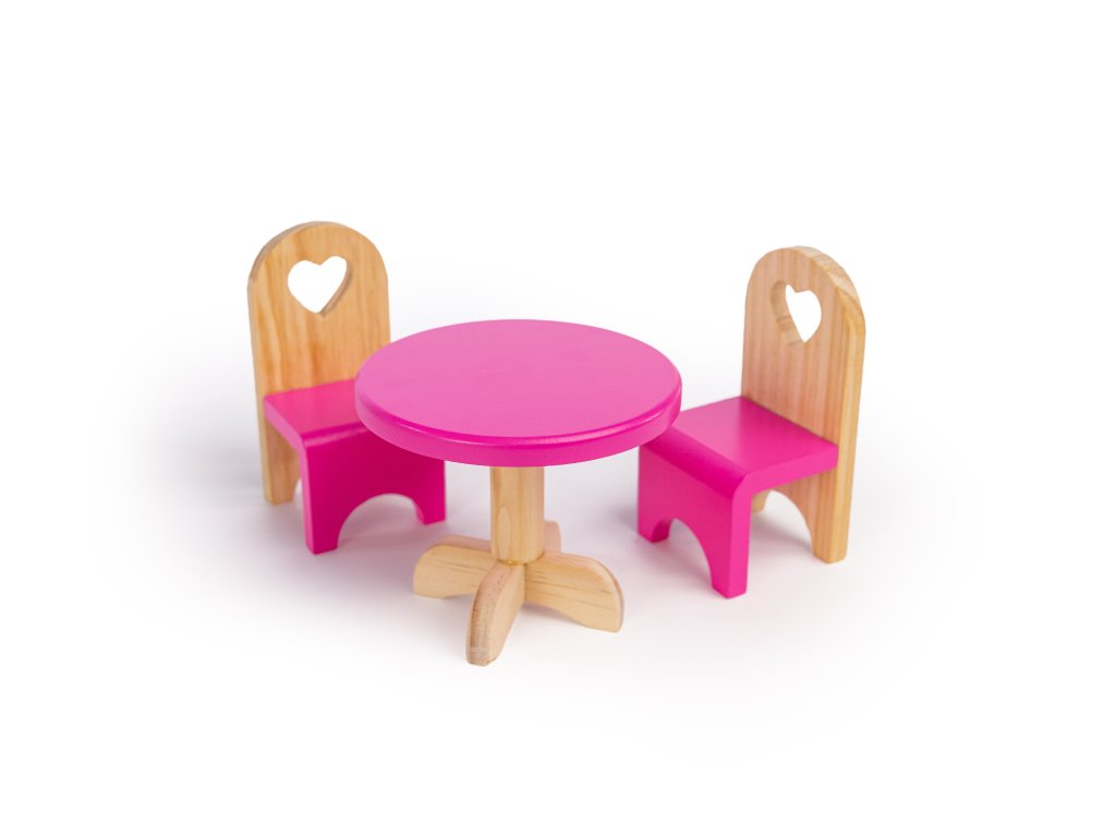 - Stilvolles Zubehör: Im Lieferumfang sind Möbel und Zubehör wie Bett, Sofa, Stühle, Tisch, Lampe, Schaukelpferd, Treppe und sogar ein Schminktisch enthalten. Dank ihnen ist jedes Spiel einzigartig und realistisch.