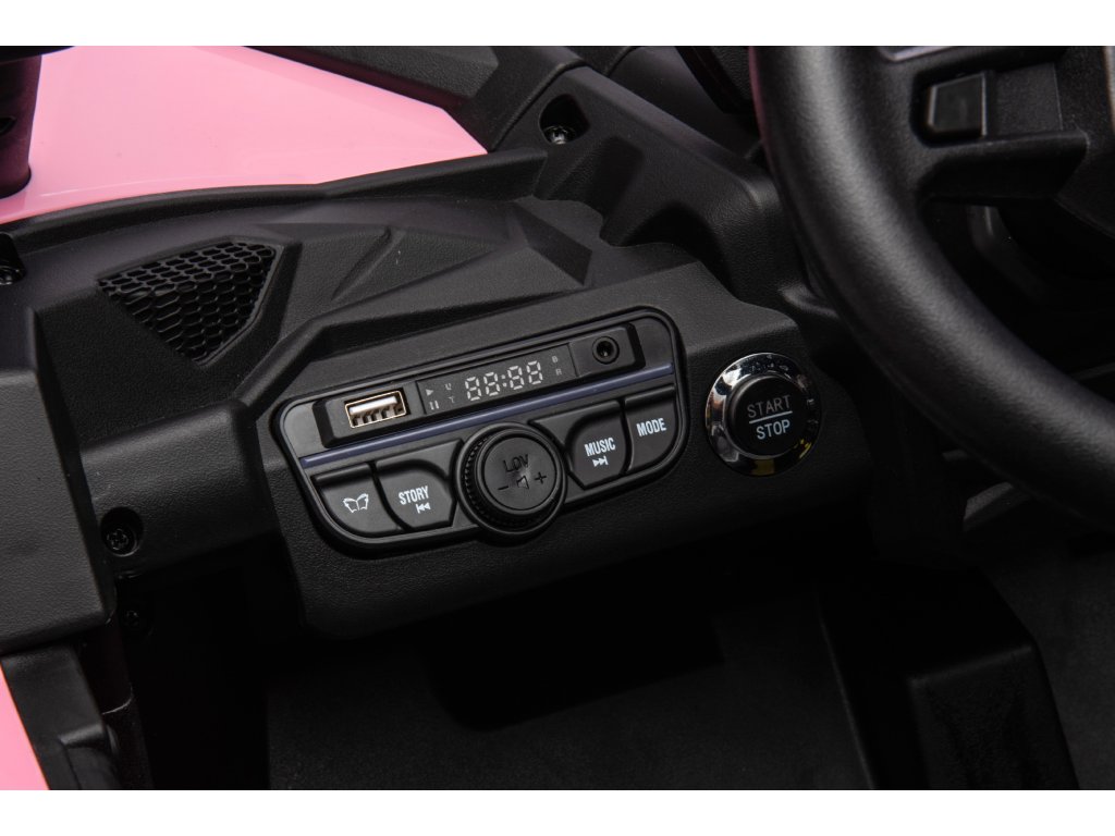Das Elektroauto Buggy 4x4 darf in keiner Kindergarage fehlen. Das Auto wird von einem Akku mit einer Kapazität von 24V 7Ah angetrieben. Die maximale Belastung des Fahrzeugs beträgt 30 kg. Während der Fahrt wird das Kind sicher von der Musikkonsole mit MP3, USB begeistert sein.