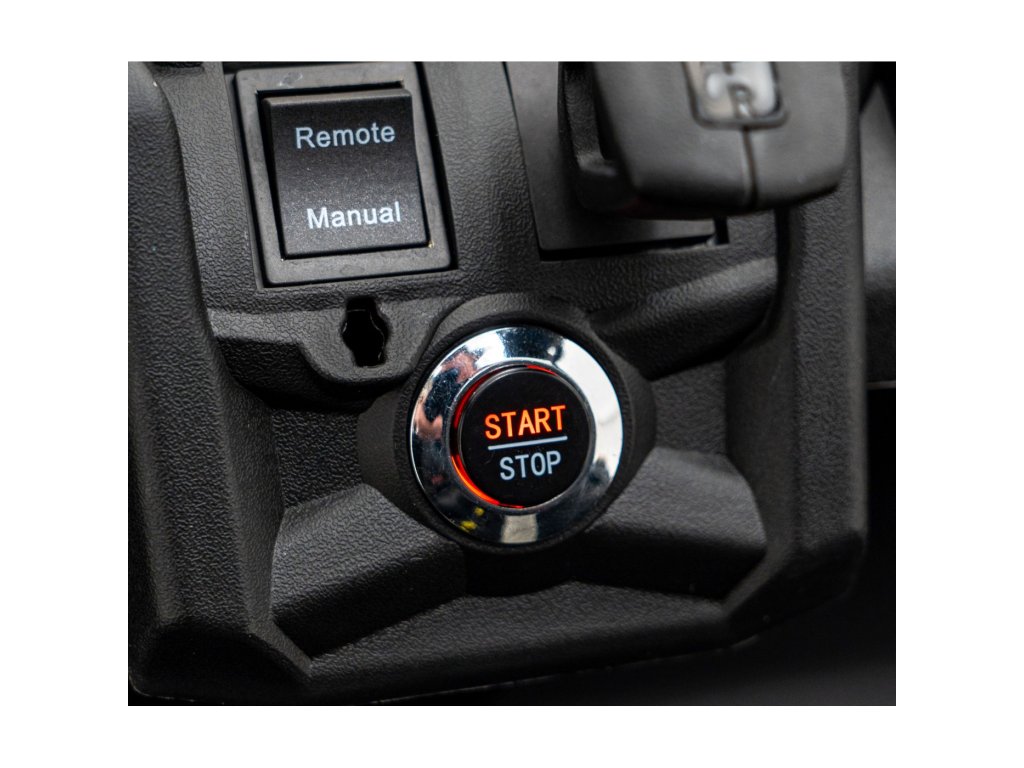 Sie können das Auto mit einer Fernbedienung steuern, die auf einer Frequenz von 2,4 GHz arbeitet. Die Fernbedienung verfügt über drei Geschwindigkeiten und eine STOP-Sicherheitstaste, die das Auto bei Betätigung sofort stoppt. Der Sitz ist aus Kunststoff und verfügt über Sicherheitsgurte.
