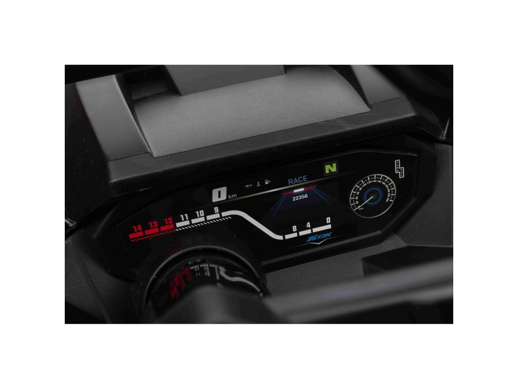 Der Innenraum ist mit einem Sitz aus Öko-Leder, einem Musikpanel mit MP3, USB und Bluetooth Anschlüssen ausgestattet. Beim Starten des Fahrzeugs hören Sie die Motorengeräusche.