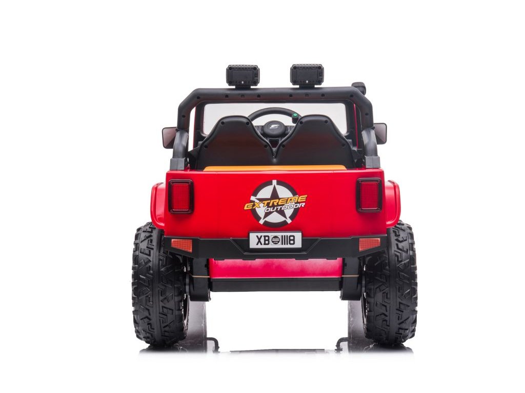 Das Elektroauto Jeep 4Speed hat vier Motoren mit einer Leistung von 45W und eine Batterie mit einer Kapazität von 12V 10Ah. Das Auto verfügt über ein Musikpanel mit vorinstallierten Melodien, USB- und Bluetooth-Anschlüssen. Am Lenkrad ist eine Hupe angebracht.Das Auto ist mit vorderen LED-Scheinwerfern ausgestattet. Das Auto wird mit einem Schlüssel gestartet und Sie hören charakteristische Motorengeräusche.
