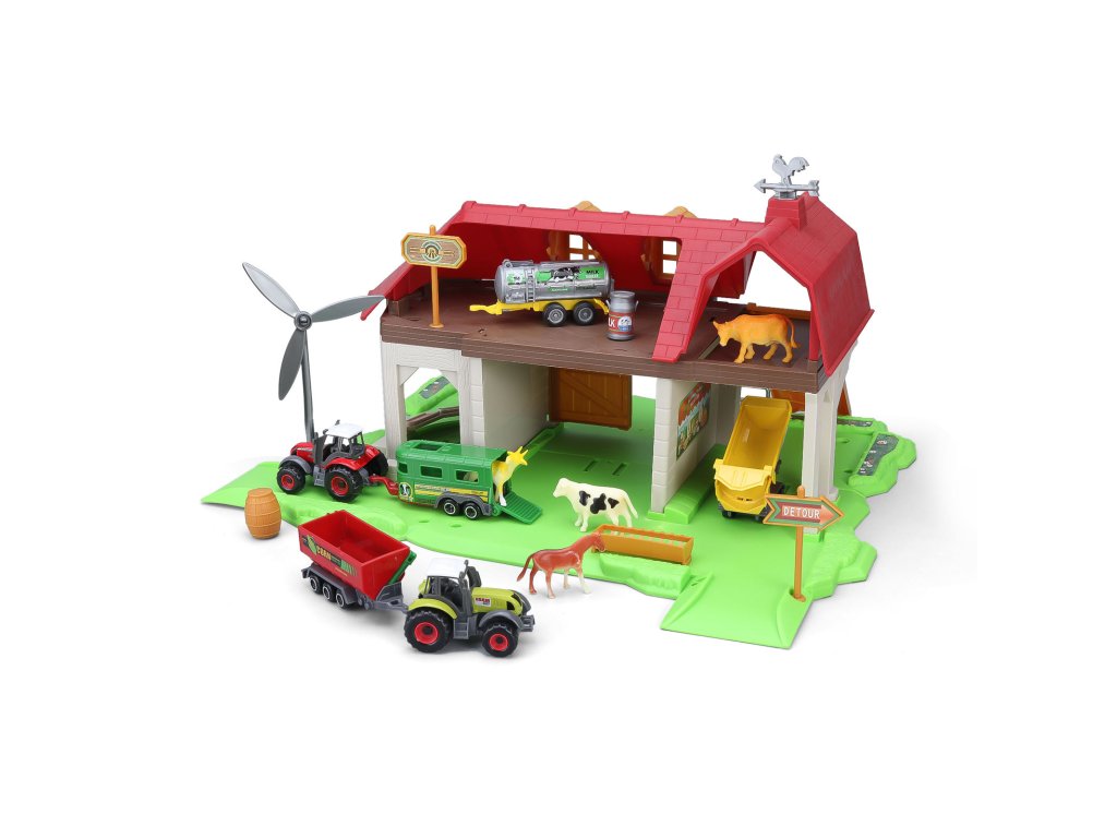 - Komplettes Set: Enthält Traktoren, Anhänger, Tiere (Kühe, Pferde, Schafe und mehr), eine Scheune und weiteres Zubehör, das das Spiel bereichert.