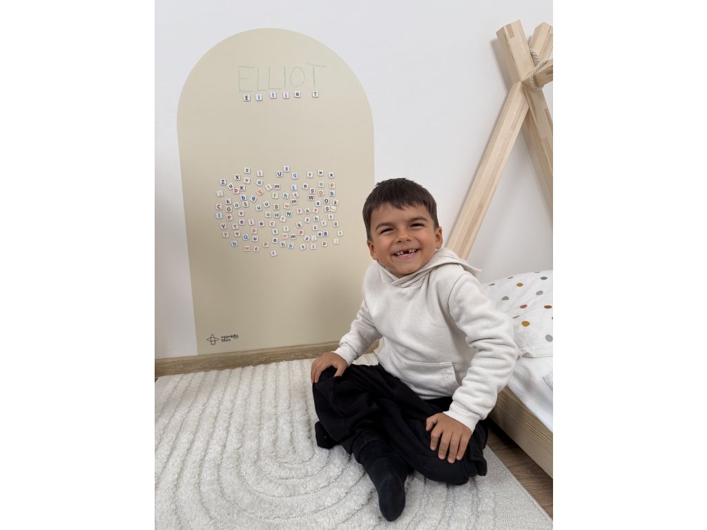 Die magnetische Tapete Mamido Tiles bringt Kindern dank ihrer magnetischen Kraft und einfachen Installation noch mehr Spaß, Kreativität und Lernerlebnisse. Einfach an eine glatte Wand kleben und im Handumdrehen entsteht ein interaktiver Bereich für Magnete, Kreidezeichnungen, Malereien mit abwaschbaren Farben und Schreiben mit Whiteboard-Stiften.