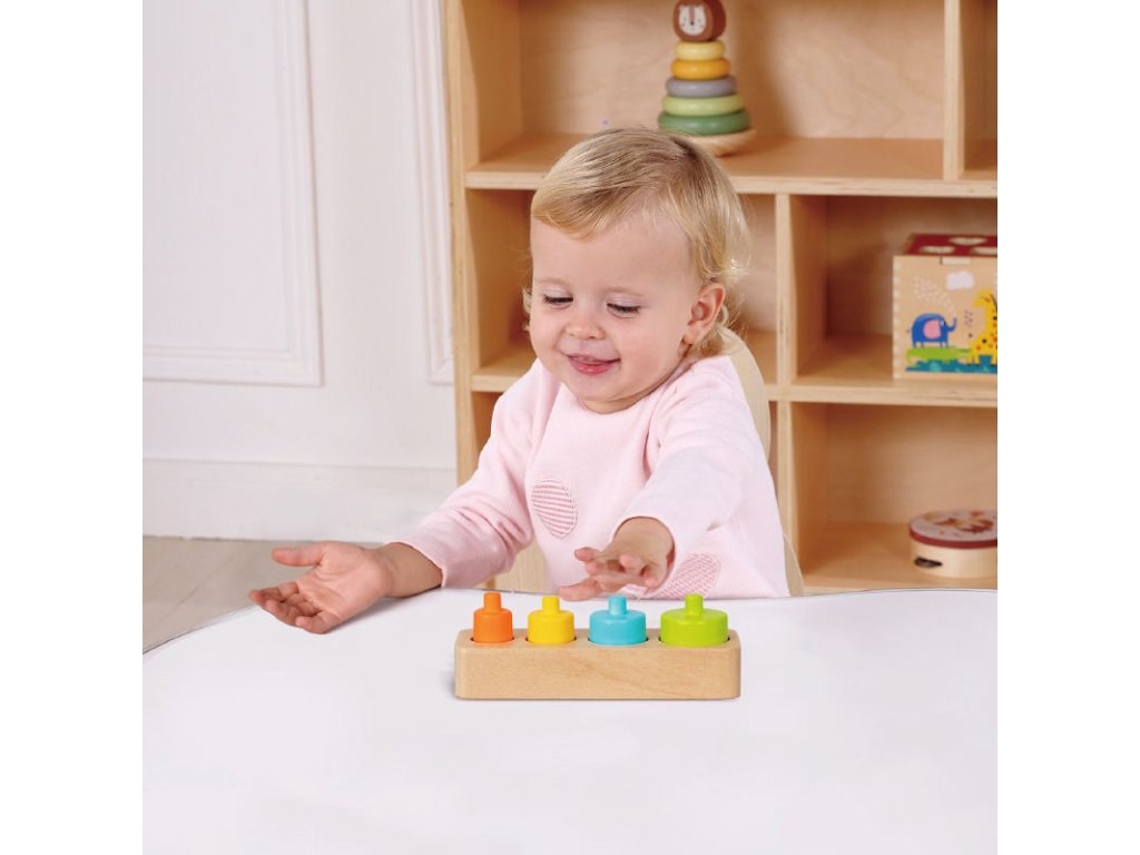 - Ermöglicht Kindern, Gegenstände einzulegen und das Konzept der Objektpermanenz zu entdecken.