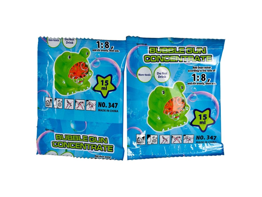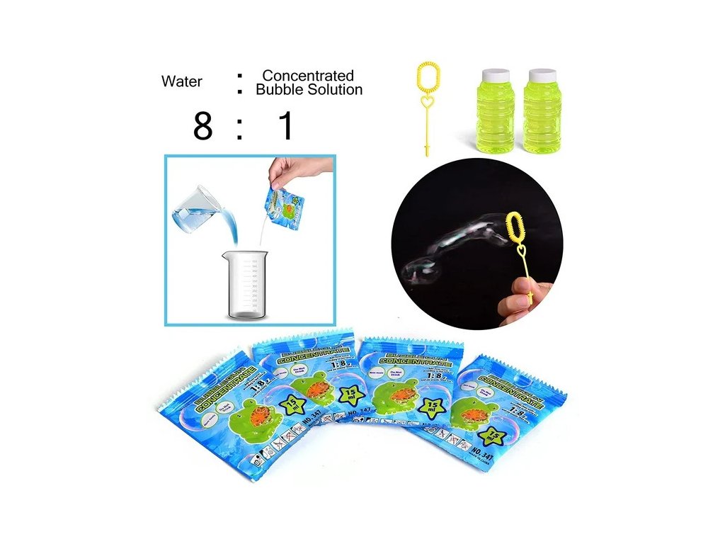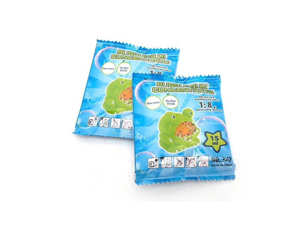 Die Flüssigkeit ist in einem robusten Beutel verpackt. Unsere Blasenseife ist vielseitig und passt hervorragend zu verschiedenen Zubehörteilen, die in unserem Online-Shop erhältlich sind (Pistolen und Blasenspender).