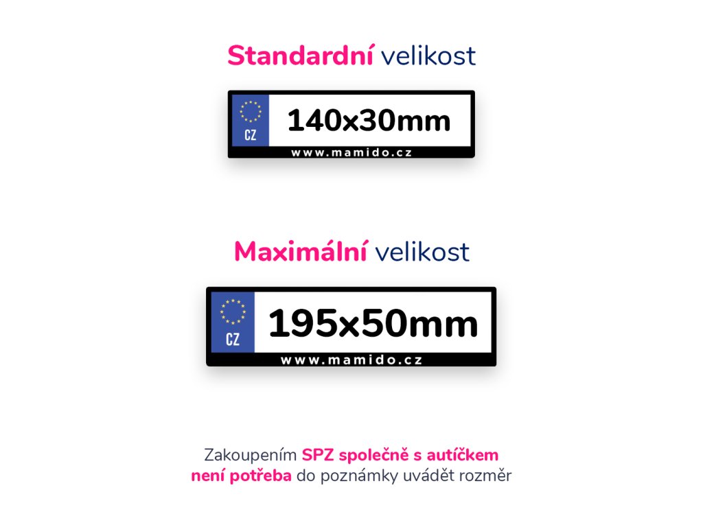 - Pokud si přejete jen SPZ, napište nám rozměry do poznámky u objednávky.