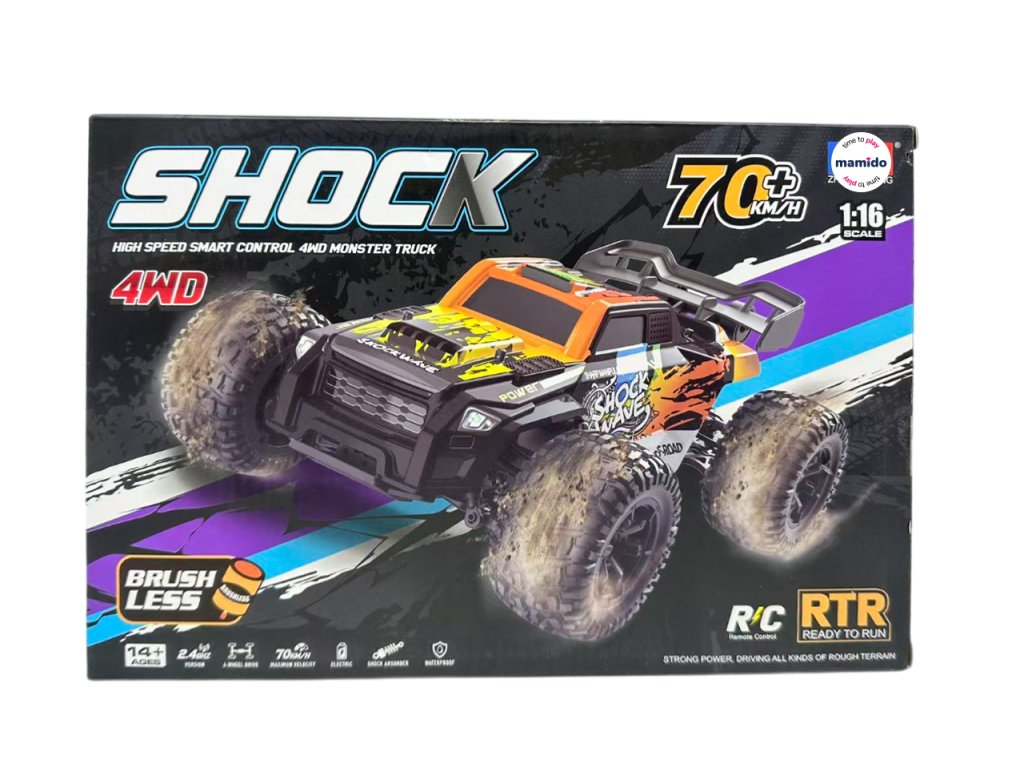 Erleben Sie extreme Leistung mit dem RC Monster Truck im Maßstab 1:16. Dieses Modell ist mit einem leistungsstarken bürstenlosen Motor ausgestattet, der Geschwindigkeiten von über 60 km/h erreichen kann, und Allradantrieb für maximale Traktion und Stabilität.