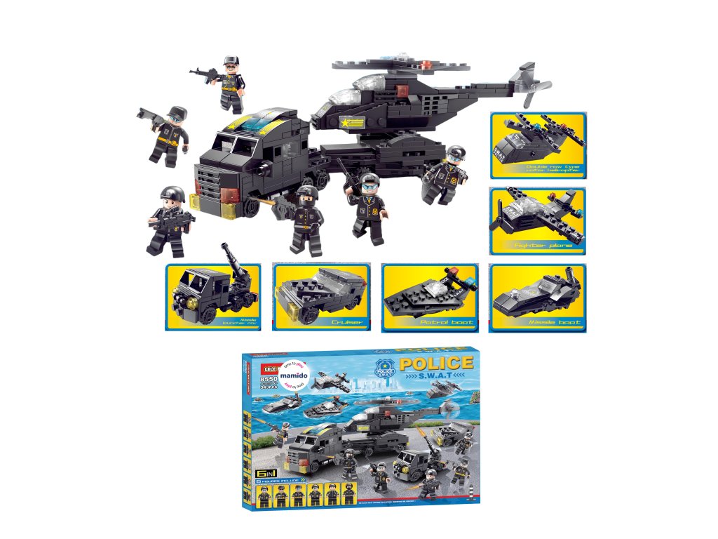 Jedes Modell sieht realistisch aus und lässt sich leicht umbauen. Dank der sechs mitgelieferten SWAT-Figuren kann sofort eine Rettungs- oder Einsatzaktion zu Lande und zu Wasser beginnen. Das Set fördert Vorstellungskraft, logisches Denken und kreatives Spielen.