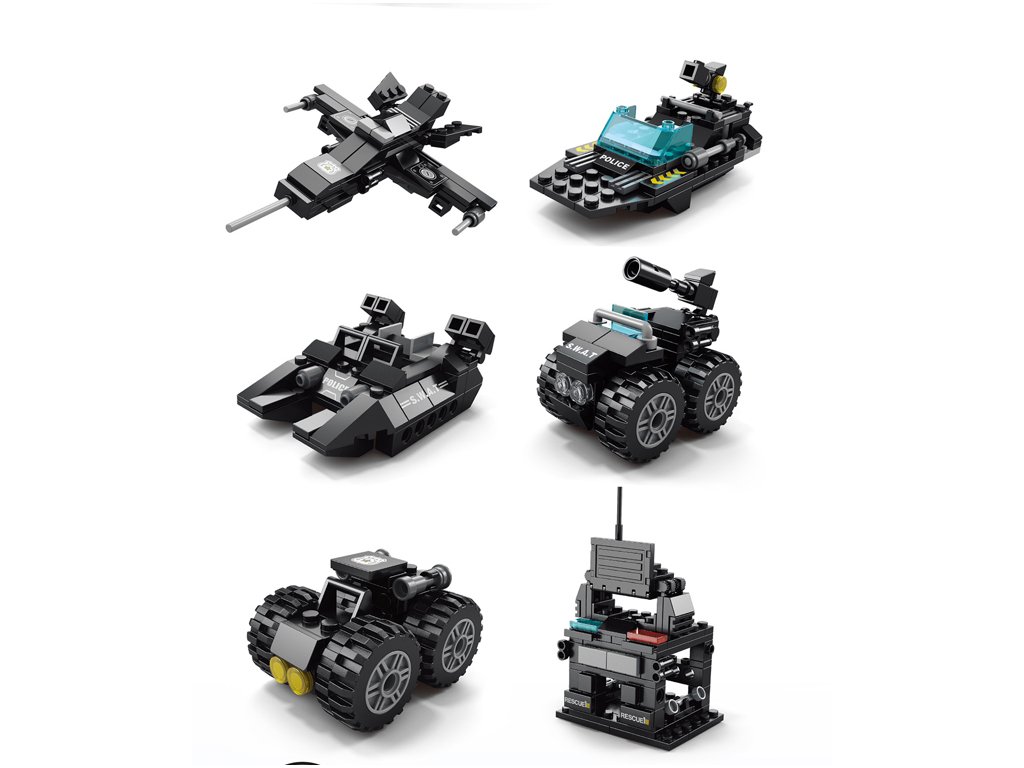 Jedes Modell verfügt über realistische Details, die die kindliche Vorstellungskraft anregen und das Erschaffen verschiedener Einsatzszenarien der SWAT-Eliteeinheit ermöglichen. Die Teile sind mit den meisten gängigen Baustein-Sets kompatibel, sodass sie kombiniert und erweitert werden können.