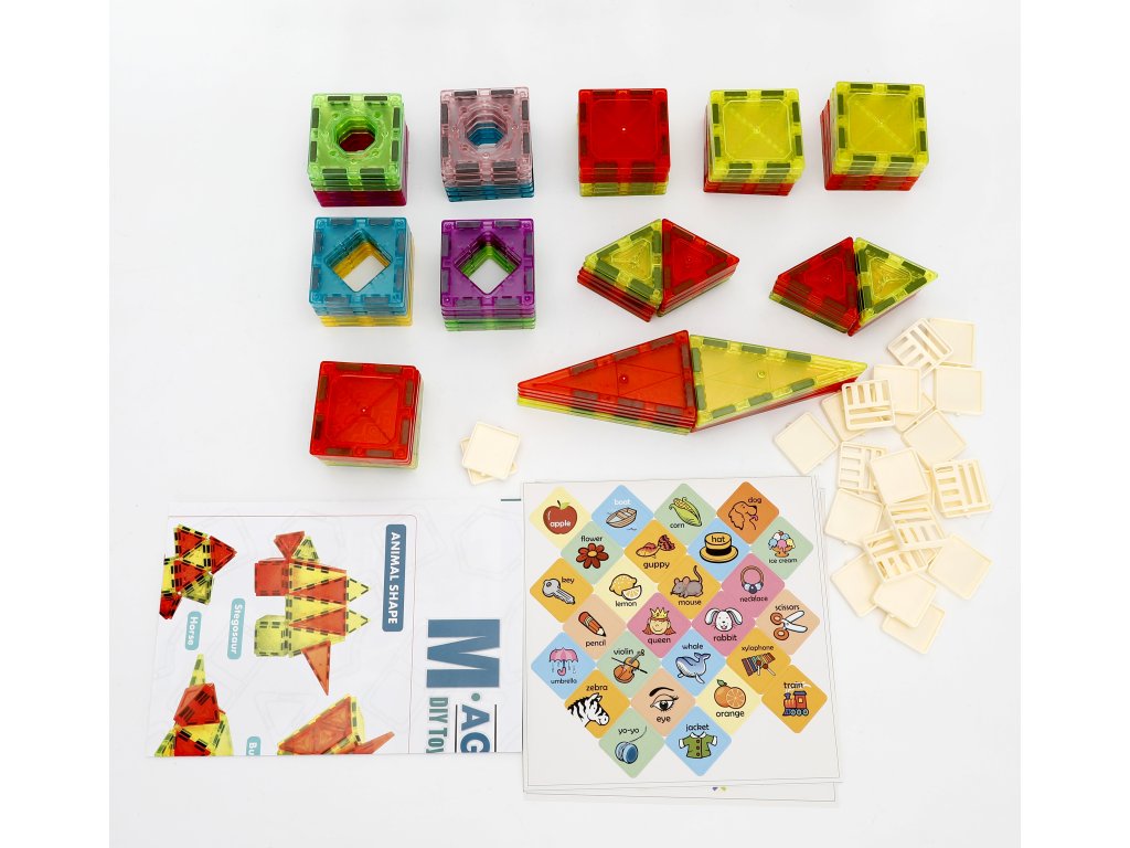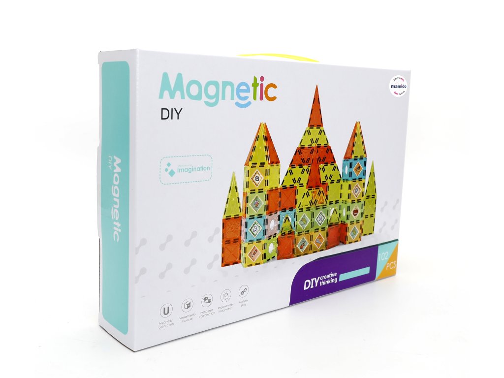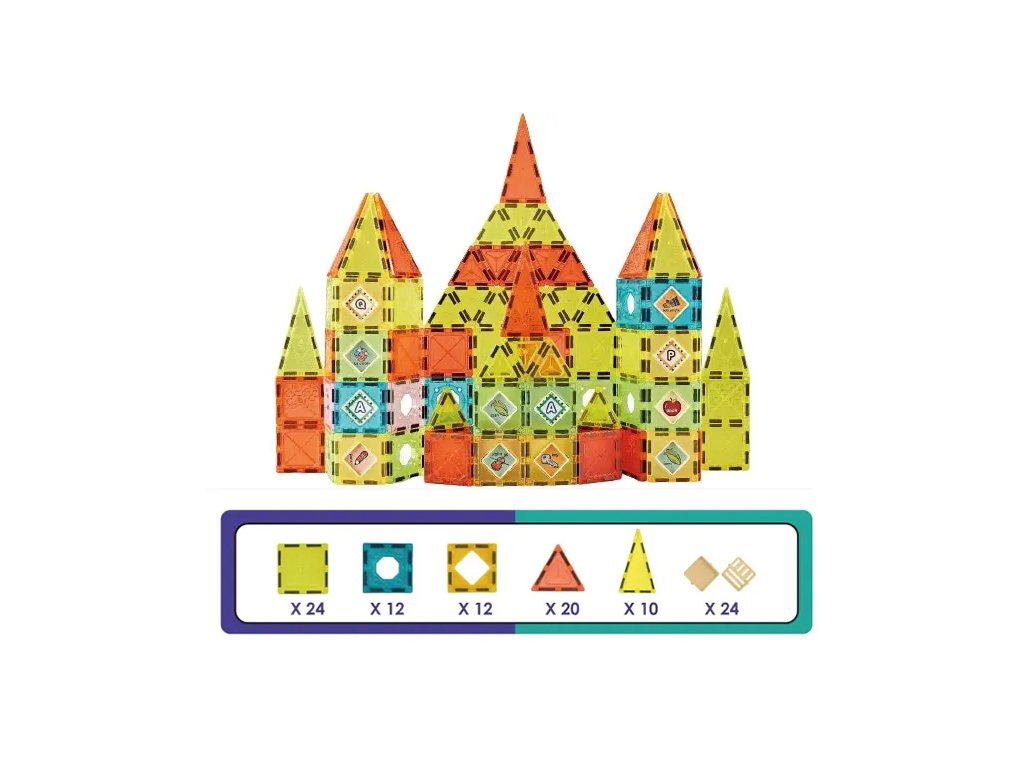 Kreatives magnetisches Baustein-Set mit 102 bunten Kacheln von 5,5 cm Größe, eine großartige Wahl für Kinder, die Bauen, Lichteffekte und das Kombinieren von Formen lieben. Die kleinere Größe der Teile ist ideal für detaillierte Konstruktionen, stabile Bauwerke und das Erschaffen kleinerer Burgen, Häuser und Türme. Transparente Farb-Fenster-Teile erzeugen schöne Farbreflexionen und halten dank starker Magnete immer gut zusammen.