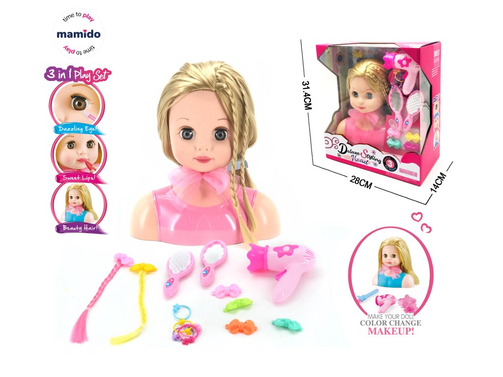 Velká kadeřnická hlava panenky nabízí nekonečné možnosti tvoření účesů a líčení. Děti mohou panenku česat, zdobit doplňky a dokonce měnit barvu make-upu. Skvělá hračka pro malé stylistky, které rády kombinují kreativitu s fantazií.