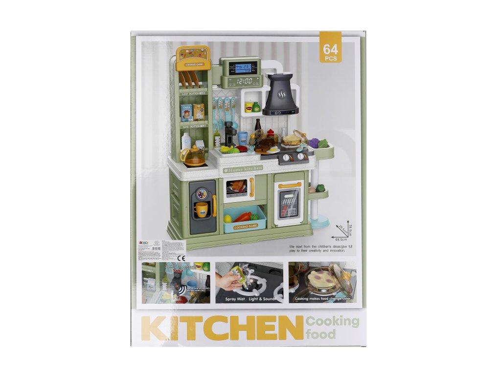 Dětská kuchyňka se světlem, zvukem a tekoucí vodou 64 dílů zelená