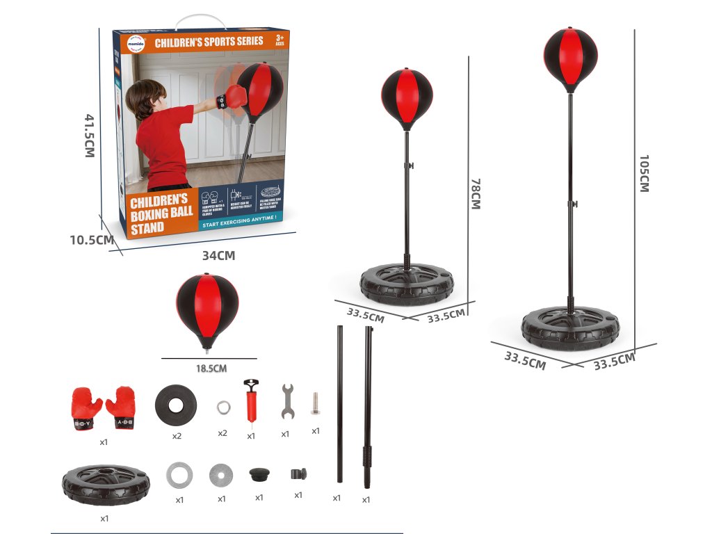 Zábavný a tréninkový boxovací set pro děti, který rozvíjí sílu, obratnost i rychlé reflexy. Součástí je boxovací hruška na stojanu s nastavitelnou výškou a pár boxerských rukavic, díky nimž si děti mohou bezpečně vyzkoušet své první údery.