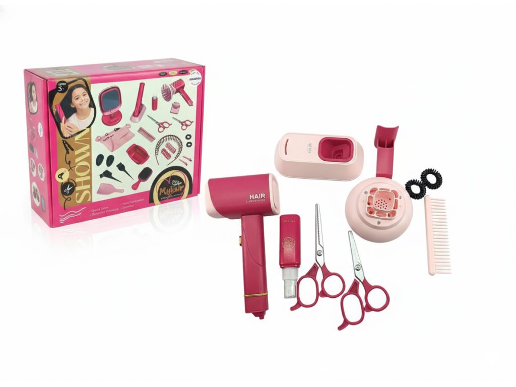 Sada je skvělou hračkou pro rozvoj dětské fantazie, jemné motoriky a hry na povolání. Fén vydává realistické zvuky a světelné efekty, což přináší ještě více zábavy. Díky různorodému příslušenství si děti mohou zahrát na kadeřnický salon samy nebo s kamarády.