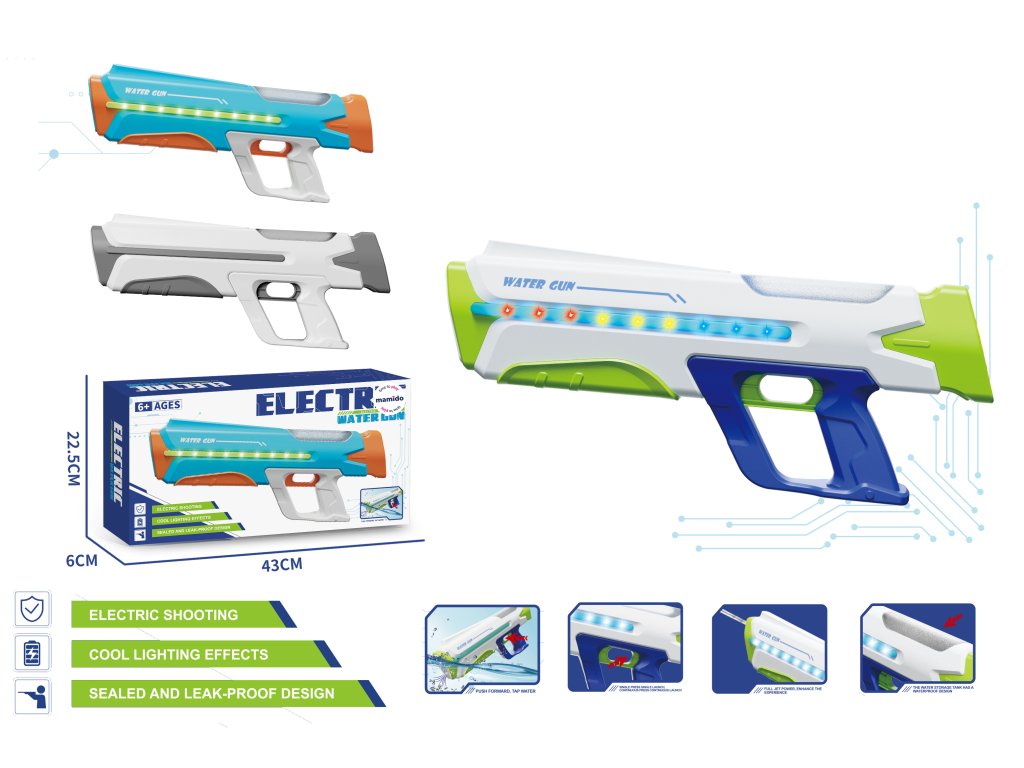 Machen Sie sich bereit für erfrischenden Sommerspaß mit der elektrischen Wasserpistole! Dank des automatischen Schießens, der bunten LED-Beleuchtung und der dichten Konstruktion gegen Wasseraustritt ist diese Pistole die ideale Wahl für alle kleinen und großen Kämpfer. Sie bietet einen starken Wasserstrahl, ohne manuelles Pumpen, sodass Sie nur den Abzug drücken müssen und die Action beginnen kann!