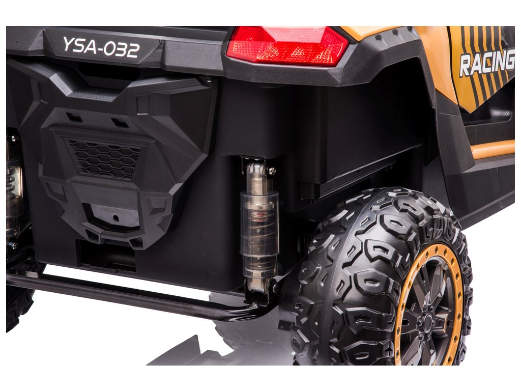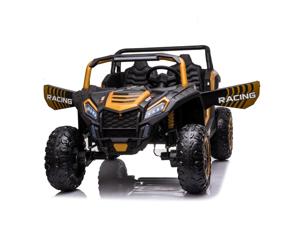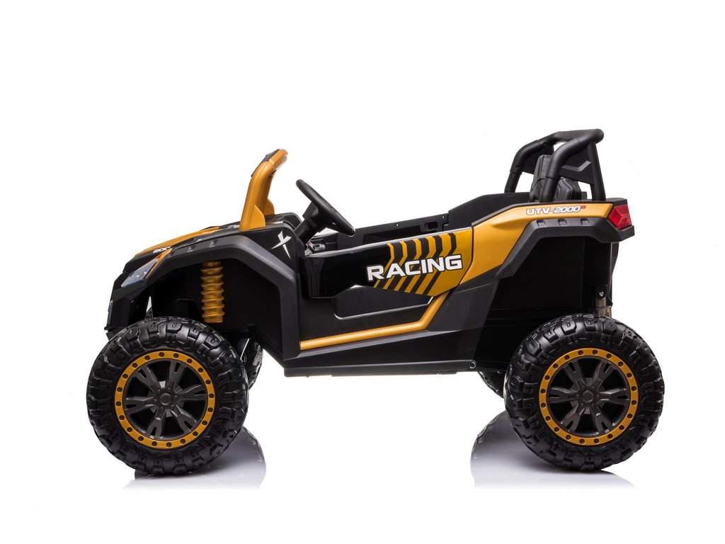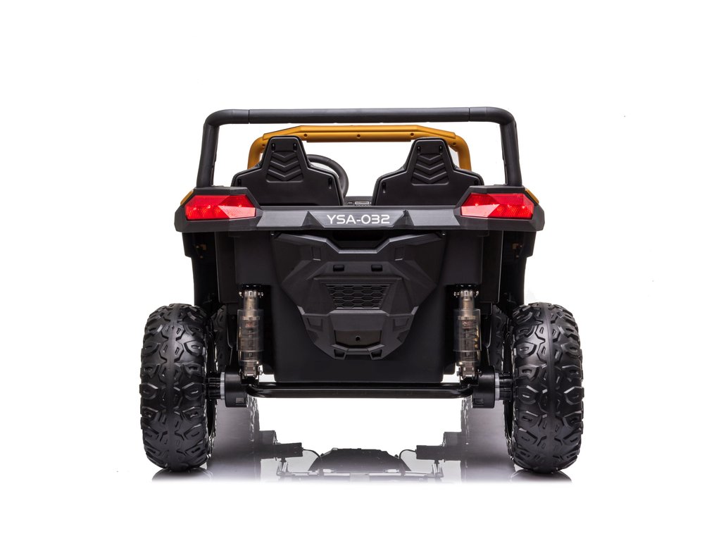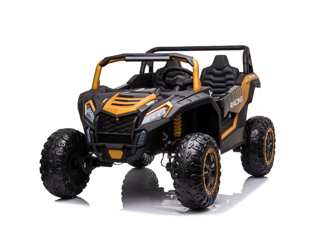Kinder Elektroauto Buggy UTV mit vier leistungsstarken Elektromotoren 200W. Das Auto meistert mühelos jedes Gelände. Zwei Kinder finden bequem auf dem Sitz Platz, da das Auto eine Tragfähigkeit von bis zu 60 kg hat.