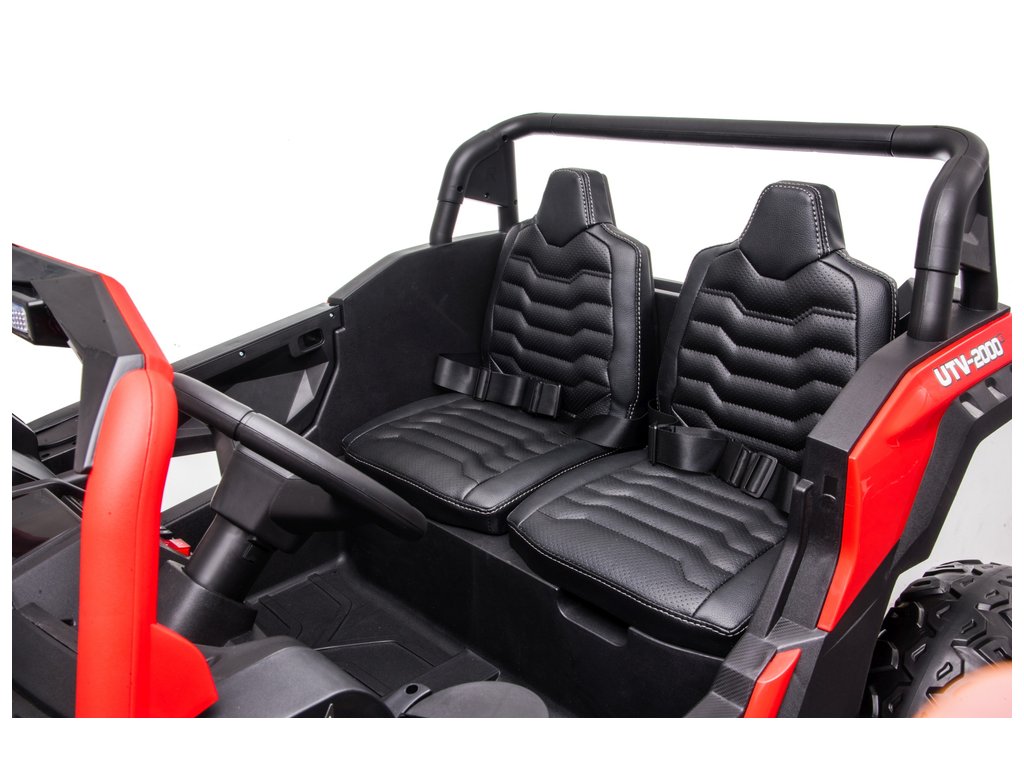 Kinder Elektroauto Buggy UTV mit vier leistungsstarken Elektromotoren 200W. Das Auto meistert mühelos jedes Gelände. Zwei Kinder finden bequem auf dem Sitz Platz, da das Auto eine Tragfähigkeit von bis zu 60 kg hat.