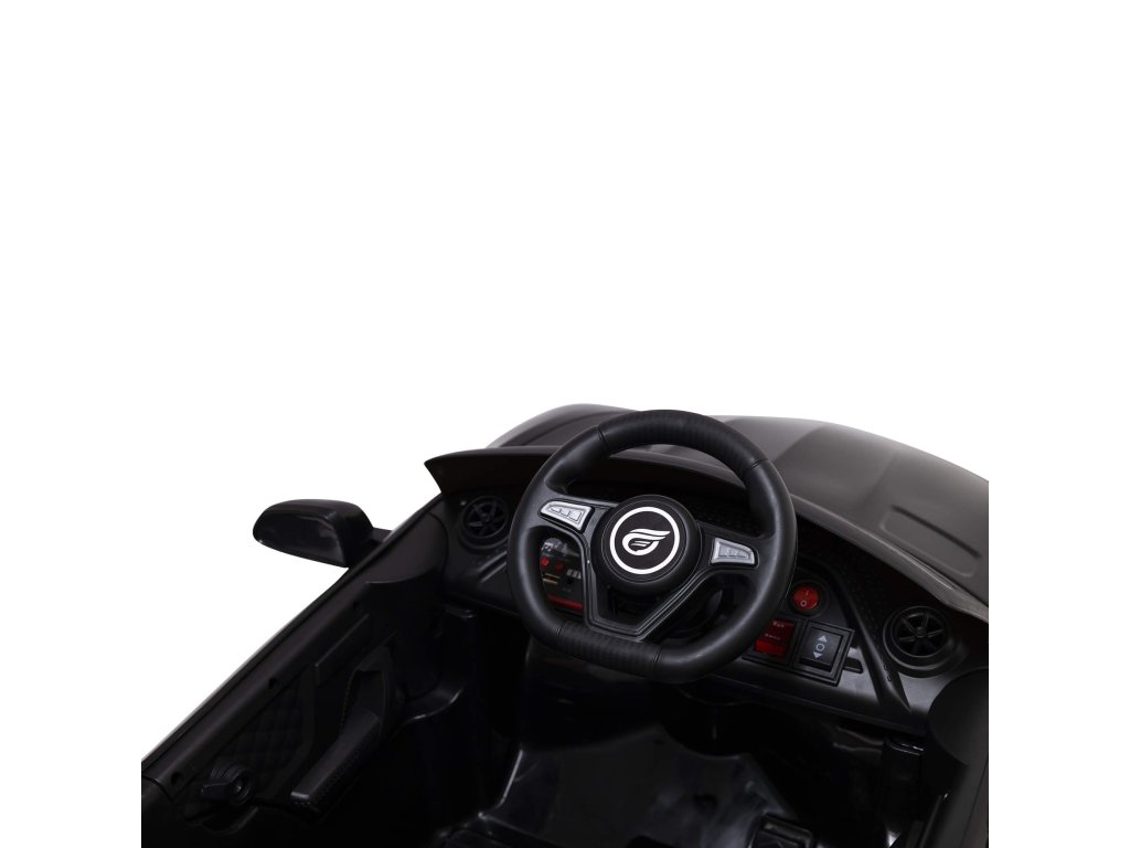 Kinder-Elektroauto Fast Wing mit umfangreicher Ausstattung und innovativem Design. Der Innenraum des Autos ist mit einem Sitz mit Sicherheitsgurten, einem Musikpanel mit Eingängen AUX, MP3, USB und Tasten mit Melodien ausgestattet. Sie beleuchten die Fahrt mit den vorderen LED-Leuchten.
