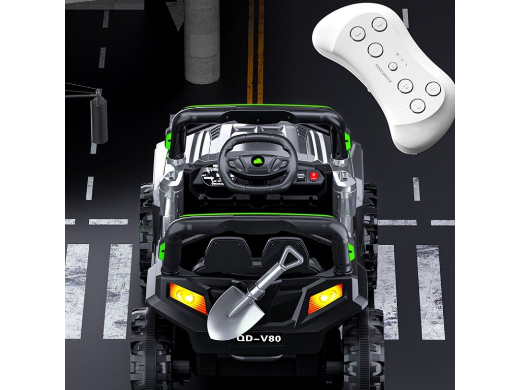 Eingebauter digitaler Audioplayer mit USB-Anschluss und Musikwiedergabefunktion sorgt für noch mehr Spaß unterwegs. Ihre Kinder können während der Fahrt ihre Lieblingsmusik genießen. Details wie realistische Lichter, Soundeffekte und Bedienelemente tragen zur Authentizität bei und machen die Fahrt noch unterhaltsamer. Die robuste Konstruktion erinnert an echte Geländefahrzeuge.