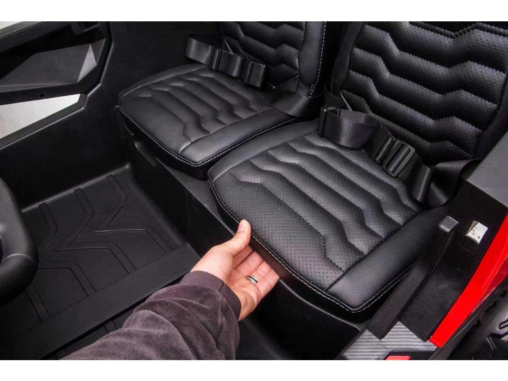 Kinder Elektroauto Buggy UTV mit vier leistungsstarken Elektromotoren 200W. Das Auto meistert mühelos jedes Gelände. Zwei Kinder finden bequem auf dem Sitz Platz, da das Auto eine Tragfähigkeit von bis zu 60 kg hat.