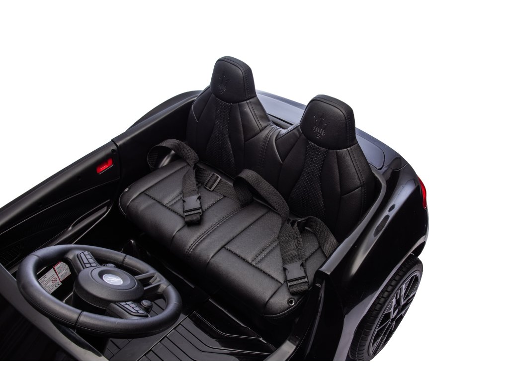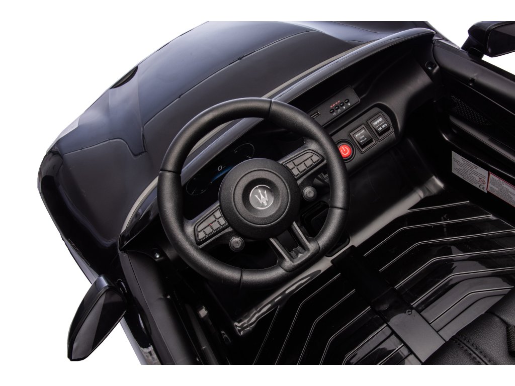 Elektrisches Maserati GranTurismo Folgore 2 Spielzeugauto ist mit vier Motoren mit einer Leistung von 120W und einem Akku mit einer Kapazität von 24V 7Ah ausgestattet. Das Auto hat vordere und hintere LED-Scheinwerfer. Das Fahrzeug verfügt über ein Musikpanel mit USB, Bluetooth und UKW-Radio.