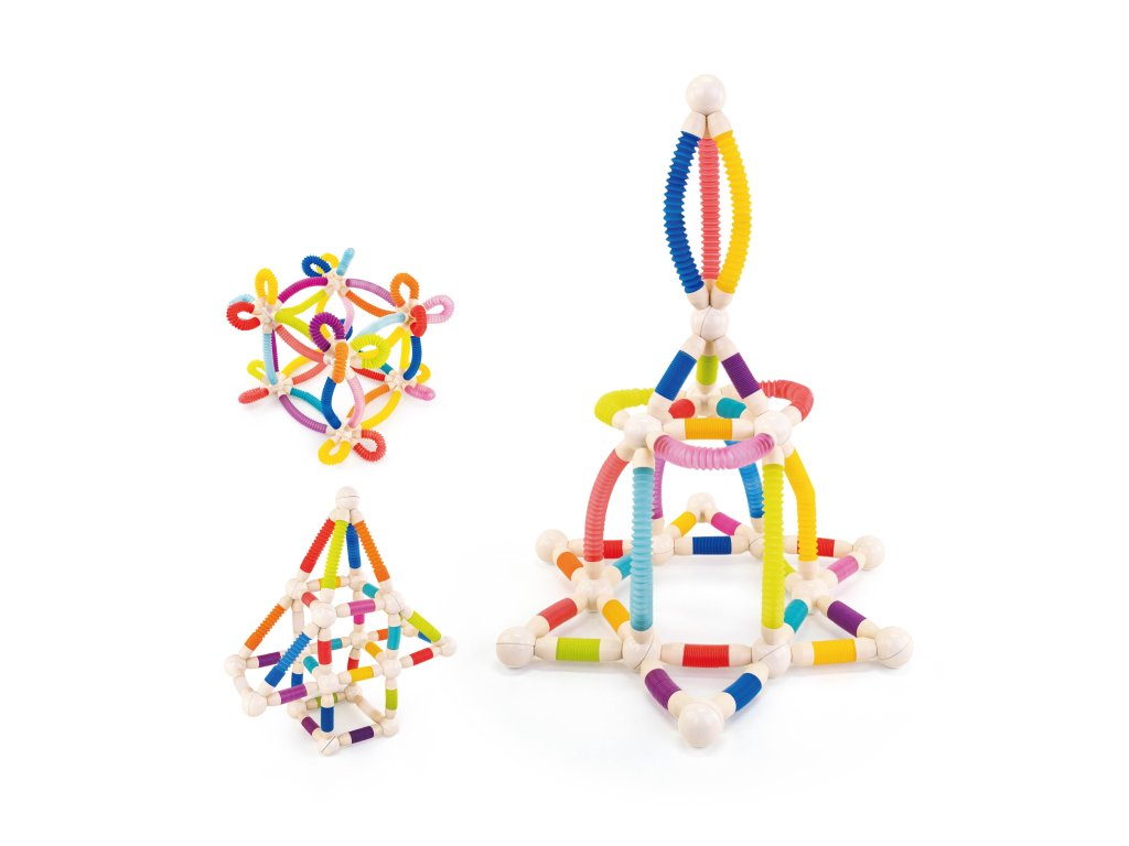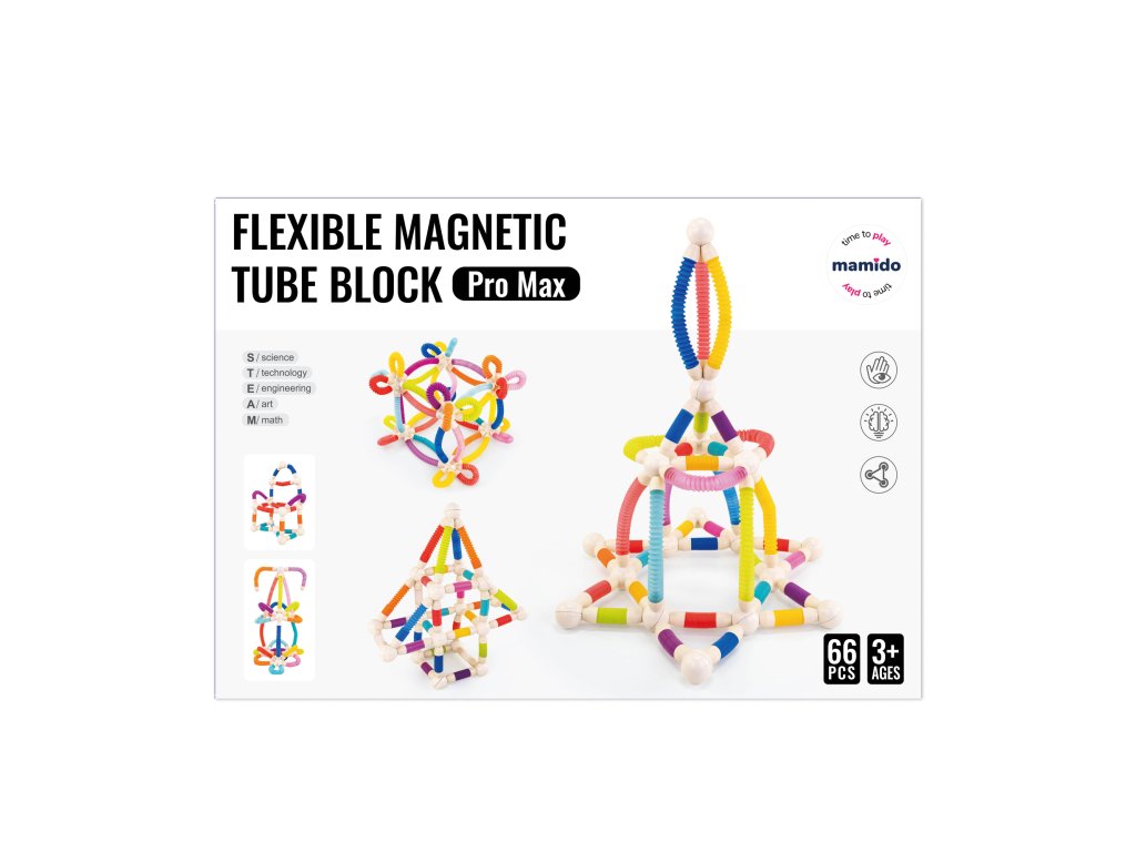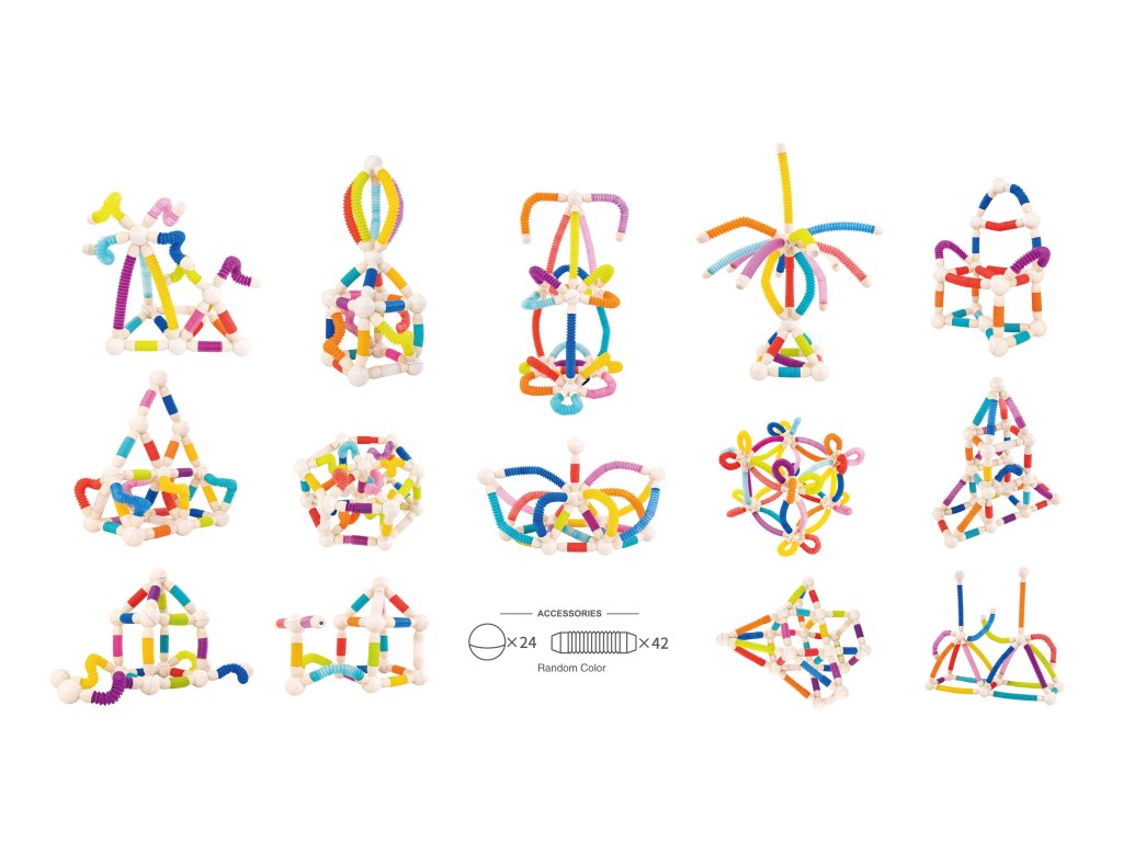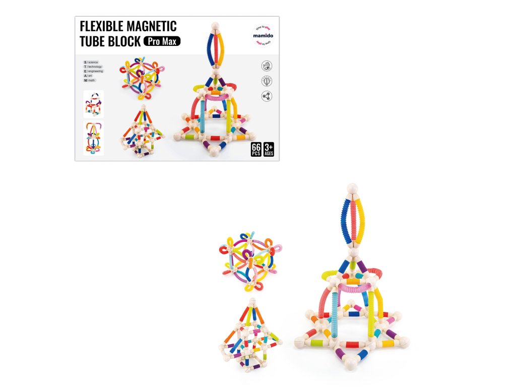 Das Set enthält 66 Teile, darunter biegsame Röhrchen und runde Magnetkupplungen. Kinder können Kugeln, Türme, Brücken, futuristische Objekte oder originelle Formen nach ihrer eigenen Vorstellungskraft erschaffen. Dank der einfachen Verbindung ist das Set bereits ab 3 Jahren geeignet und unterstützt hervorragend die Prinzipien von "STEAM" – Wissenschaft, Technik, Ingenieurwesen, Kunst und Mathematik.