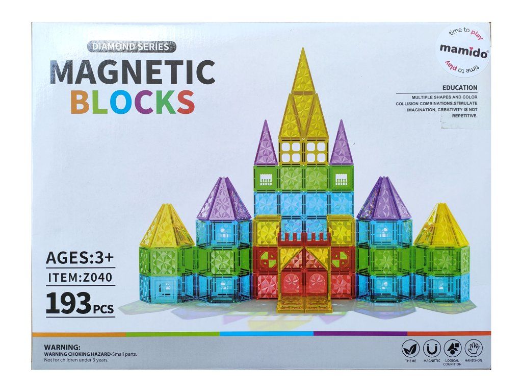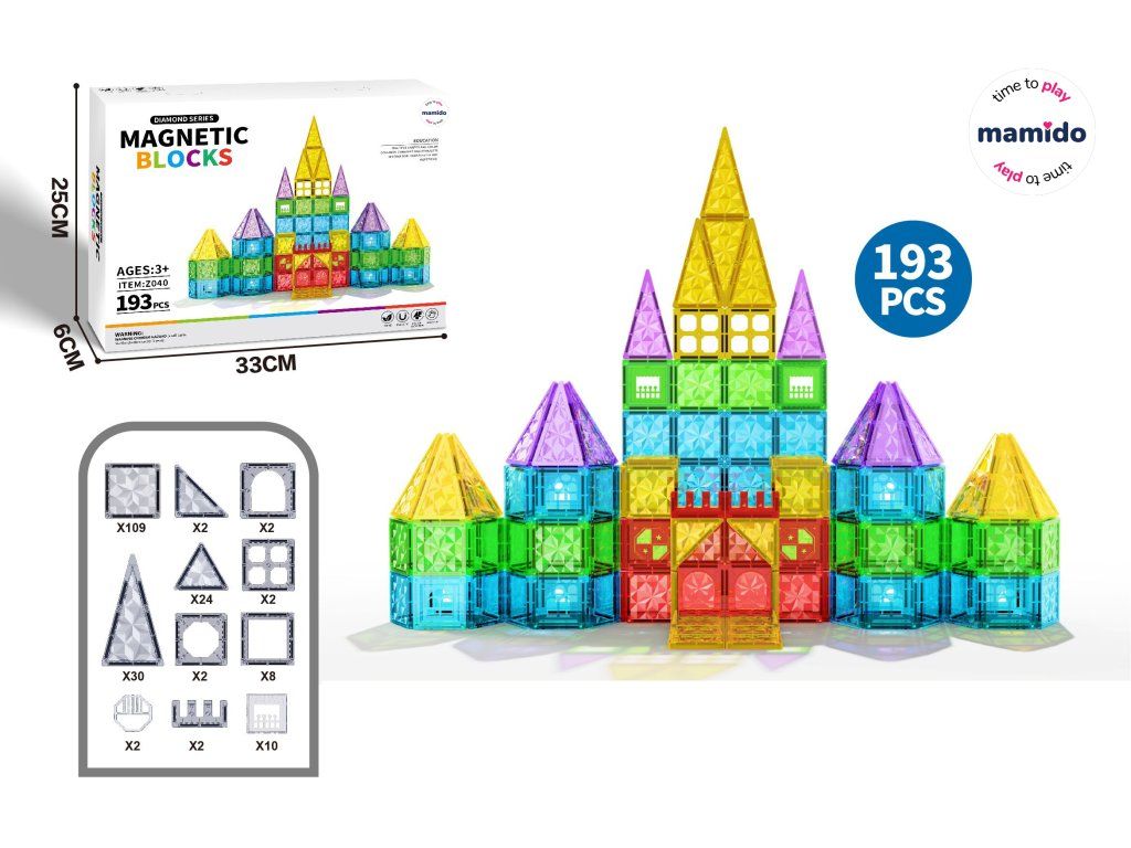 Entdecken Sie unendliche Kreationsmöglichkeiten mit dem 193-teiligen Magnetbaukasten. Die bunten, transparenten Bausteine mit Diamantoberfläche lassen sich dank starker Magnete leicht verbinden und ermöglichen den Bau hoher Burgen, Brücken, Türme und Fahrzeuge. Kinder entwickeln beim Spielen Kreativität, räumliche Vorstellungskraft und Feinmotorik.
