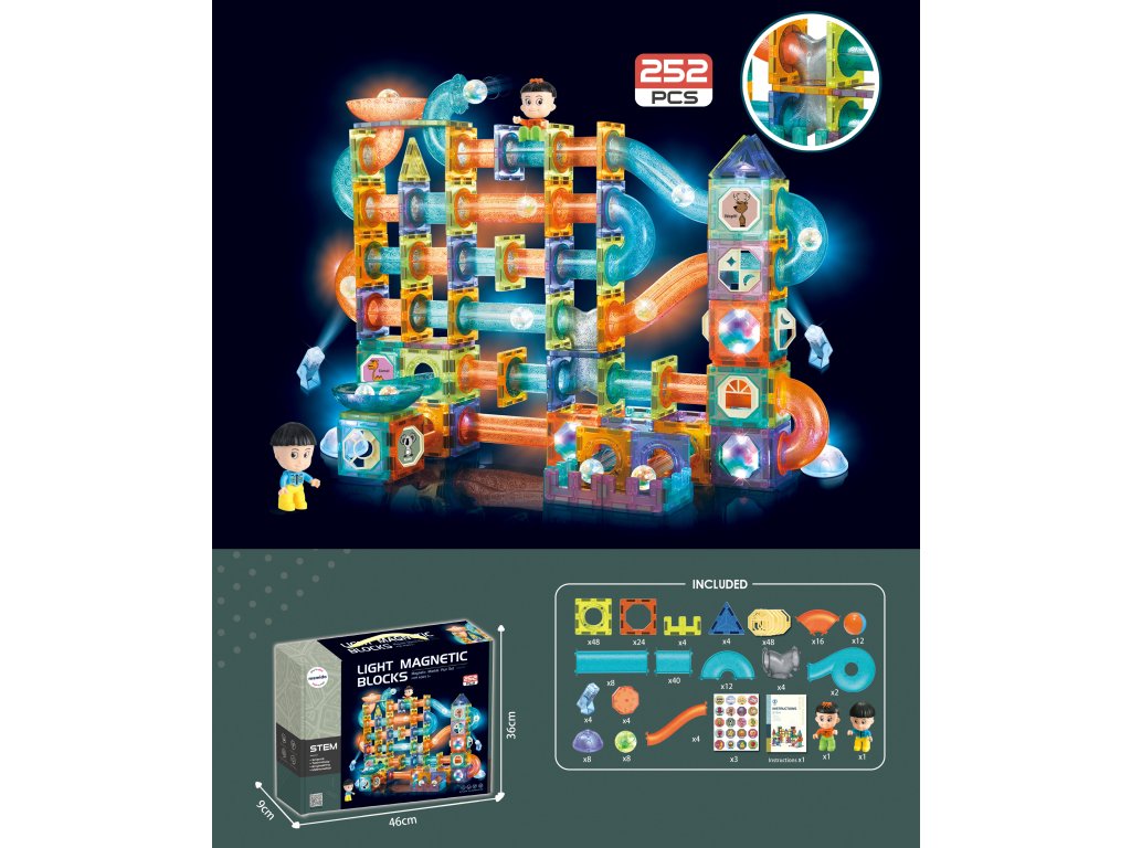 Magnetická svítící stavebnice kuličková dráha 252 dílů