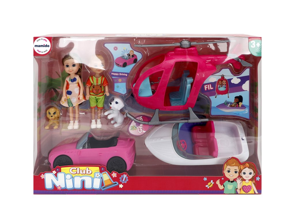 Sada obsahuje dvě panenky, auto, loď, vrtulník, pejsky a doplňky, které umožňují nekonečné kombinace her. Díky kompaktní velikosti se hodí jak na doma, tak i na cesty.