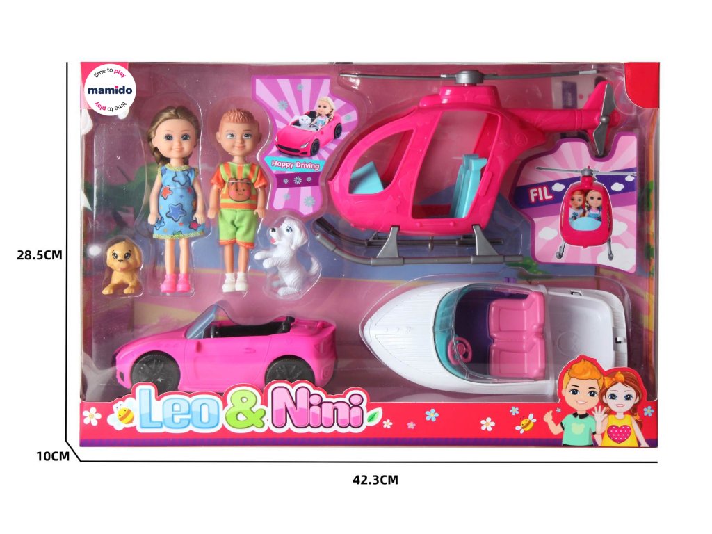 Mini panenky Leo a Nini s autem, lodí a vrtulníkem