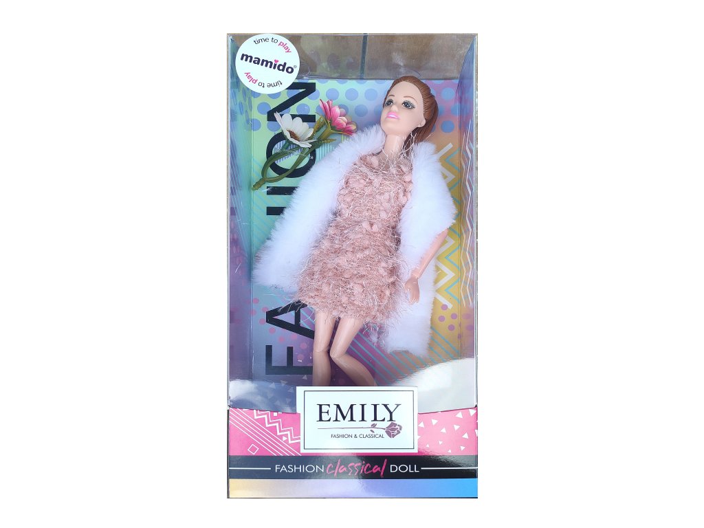 Panenka Emily z klasické série okouzlí svým módním vzhledem a pohyblivými klouby, které umožňují přirozené pózování. Je oblečená do stylových šatů s kožešinovým přehozem a je připravena stát se hvězdou každé dětské hry. Skvělá volba pro malé módní návrhářky a sběratelky panenek.