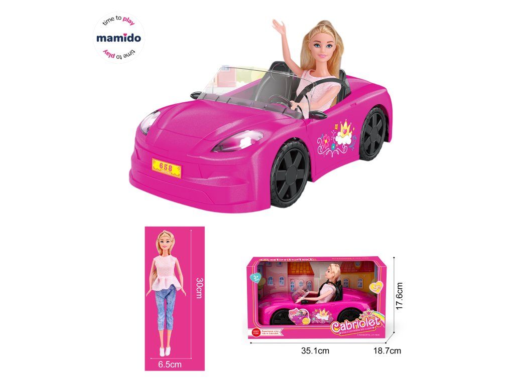 Puppe mit sportlichem rosa Auto, Blondine, Cabriolet MT1360
