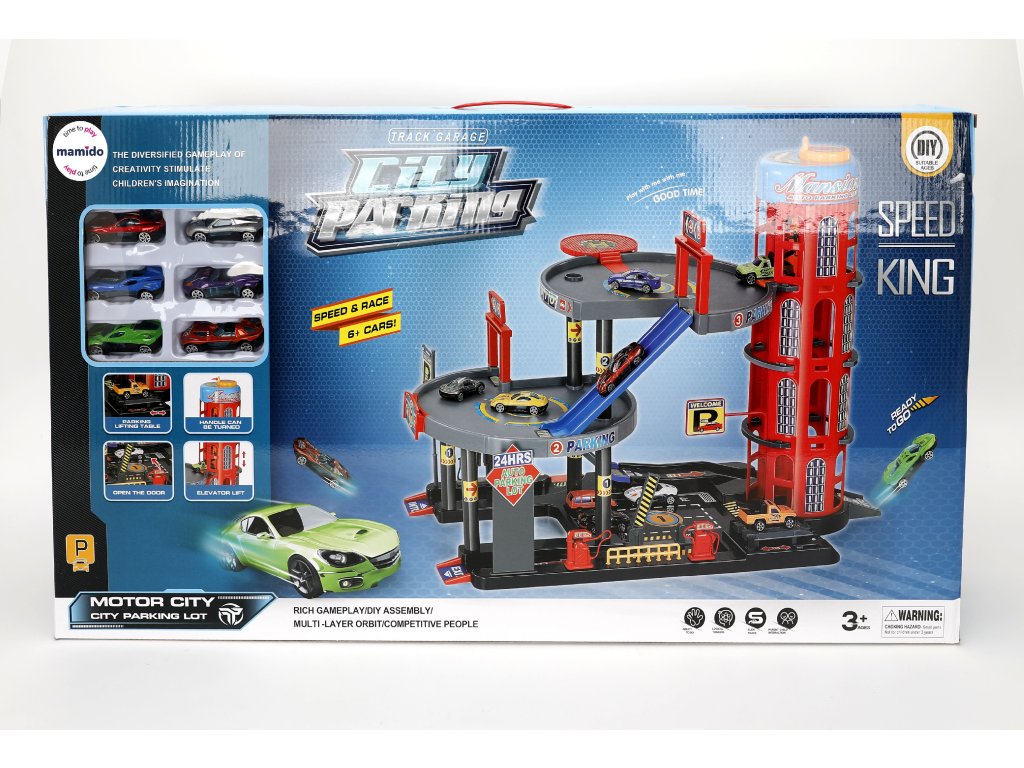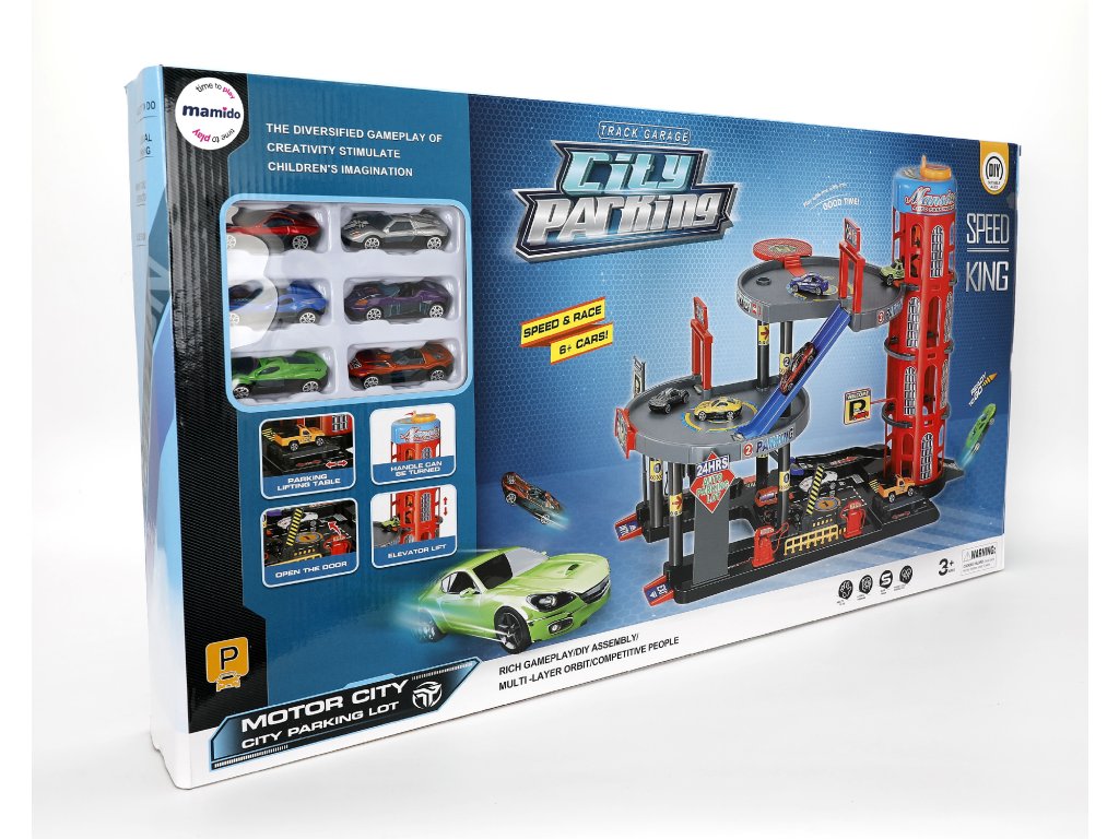 Zažij vzrušující svět městského parkování s touto patrovou garáží pro autíčka, která přináší spoustu zábavy i akce. Garáž má více podlaží, funkční výtah pro auta, sjezdové rampy, čerpací stanici i myčku. Součástí setu je také 6 kovových autíček, se kterými si děti mohou ihned začít hrát. Díky snadné montáži a barevným samolepkám se celá stavba promění v realistické město plné detailů. Ideální hračka pro všechny malé milovníky aut od 3 let, která podporuje kreativitu, motoriku i fantazii.