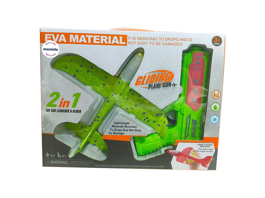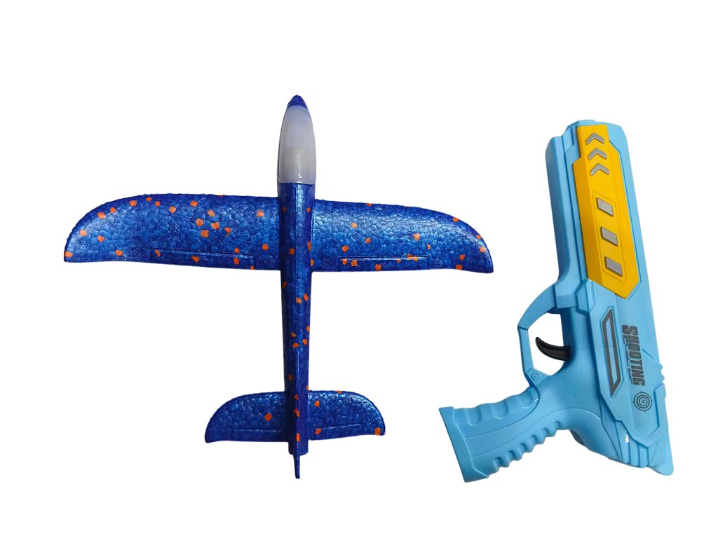 Erlebe tollen Spaß mit der originellen 2-in-1-Pistole und dem Fluggleiter! Befestige einfach das Flugzeug aus strapazierfähigem EVA-Schaumstoff an der Pistole, ziehe es auf und schieße – das Flugzeug hebt ab und gleitet durch die Luft. Dank des leichten Materials ist es sicher und stoßfest, sodass es auch wilderes Spielen übersteht. Manche Modelle verfügen zusätzlich über eine farbige LED-Beleuchtung, die dem Start noch mehr Wirkung verleiht.