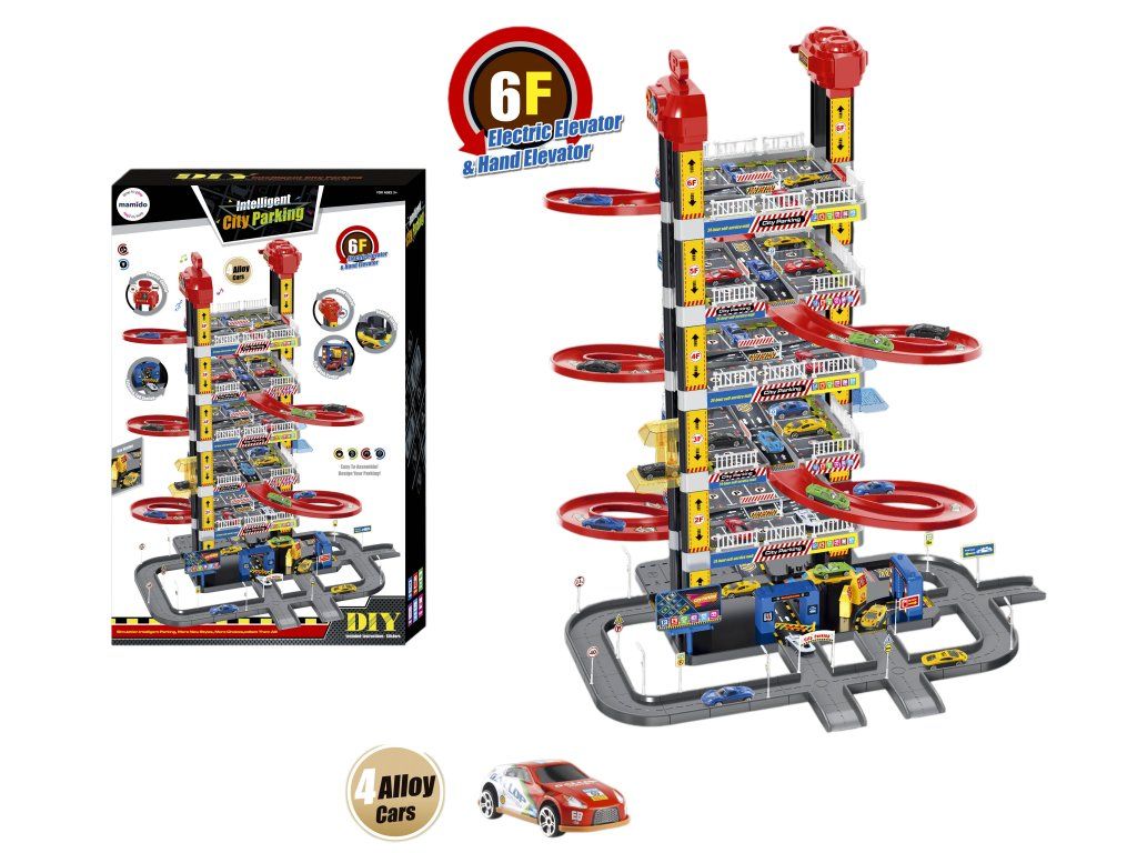Erleben Sie stundenlangen Spielspaß mit der 6-stöckigen Parkgarage, die zahlreiche Spielmöglichkeiten bietet. Die Garage ist mit einem elektrischen und manuellen Aufzug, Wendelrampen und detaillierter Verkehrsbeschilderung ausgestattet. Im Lieferumfang sind auch 4 Metallautos enthalten, mit denen Kinder ein realistisches Spiel zum Stadtverkehr erleben können.