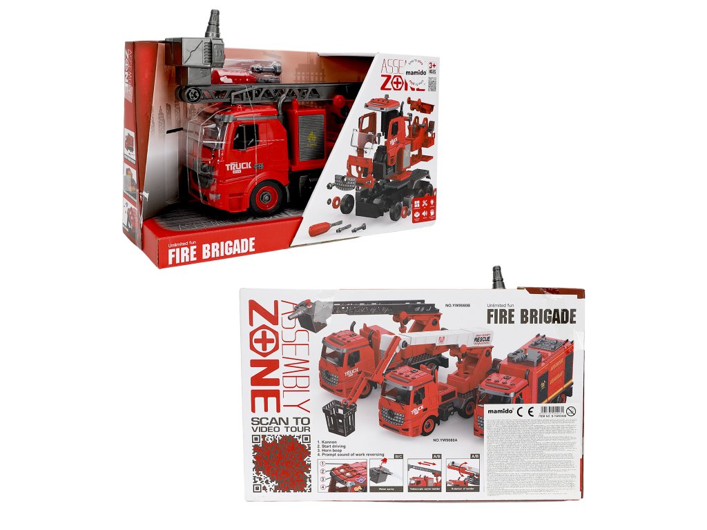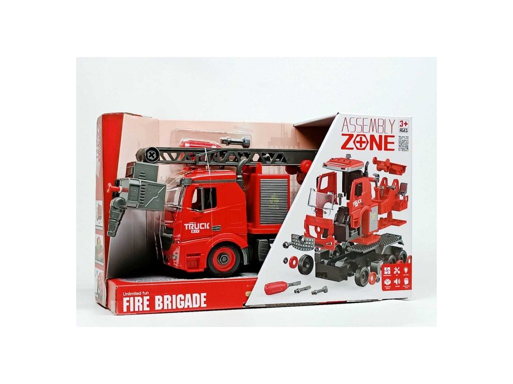 Im Paket finden Sie: Alles, was Sie zum Zusammenbau eines Feuerwehrautos und eines Schraubendrehersatzes für die Montage benötigen.