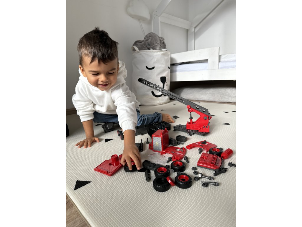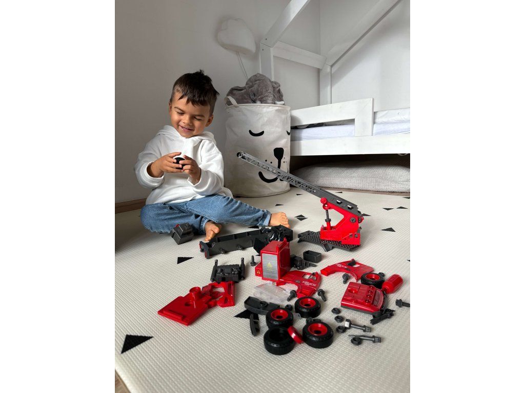 - Baut Denkfähigkeiten auf: Dank verschiedener Zubehörteile können Kinder zu kleinen Baumeistern werden, die darüber nachdenken und erforschen, wie man ein Feuerwehrauto zusammenbaut.